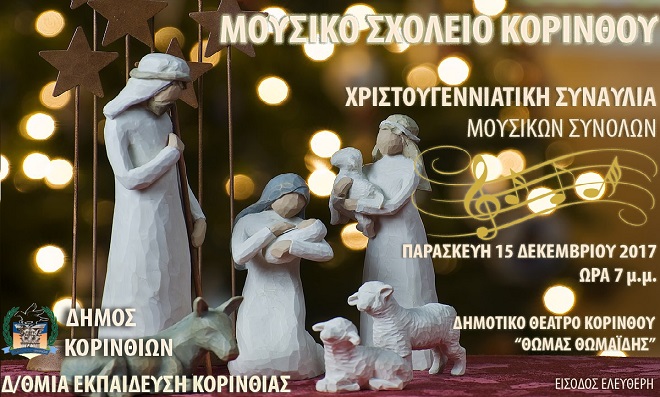την Παρασκευή 15 Δεκεμβρίου 2017 στις 7 μ.μ.στην αίθουσα του Δημοτικού Θεάτρου Κορίνθου, “Θωμάς Θωμαΐδης”.