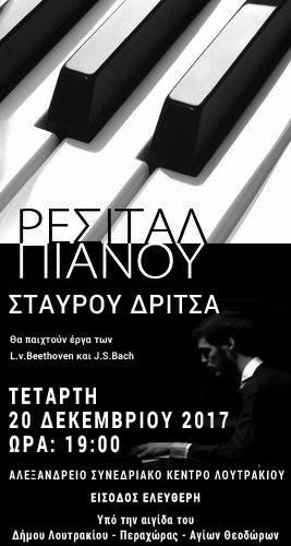 Ο Σταύρος Δρίτσας γεννήθηκε στο Λουτρακι το 1996. Ξεκίνησε τις πιανιστικές του σπουδές στο Μουσικό Σχολείο Κορίνθου και συνέχισε στο Ελληνικό Ωδείο και στη Schola Cantorum των Παρισίων υπό την καθοδήγηση της παγκόσμιους φήμης σολίστ πιάνου και παιδαγωγού Αγάθης Λεϊμονή, ενώ το 2016 απέκτησε το Diplome Supérieur από τη Schola Cantorum. Πλέον η έδρα του είναι στο Λονδίνο, όπου παρακολουθεί με υποτροφία το ‘Bachelor in Piano Performance’ στο Guildhall School of Music and Drama, με καθηγήτρια την διεθνούς κύρους σολίστ Lucy Parham.
