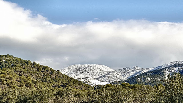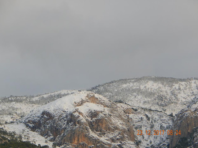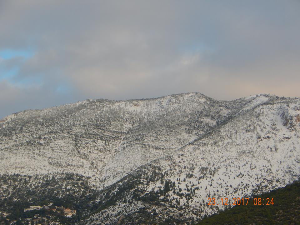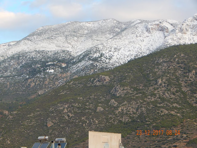 To τέλειο σκηνικό για τις εορτές των Χριστουγέννων επεφύλασσε ο καιρός με το ντύσιμο στα λευκά του πανέμορφου Όρους που σκεπάζει την πόλη μας…..