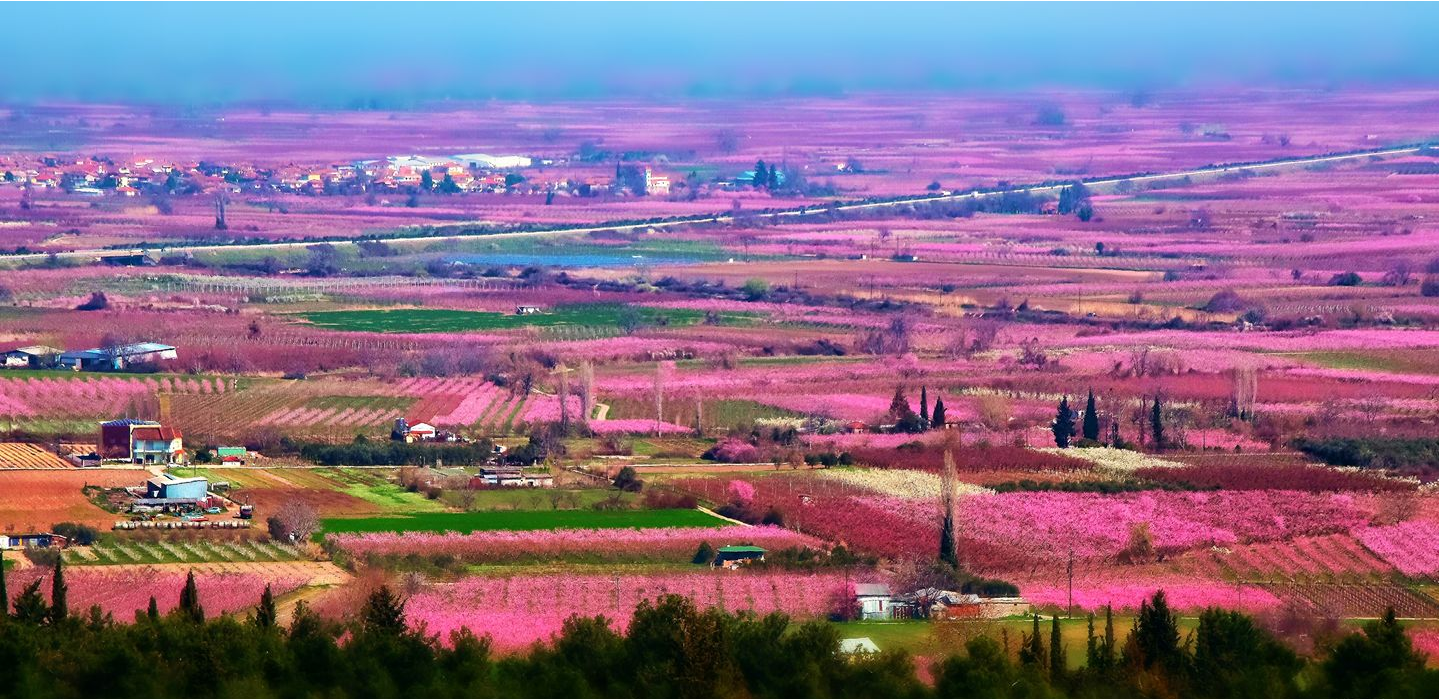 Οι χιλιάδες ανθισμένες ροδακινιές, δεν μπορούν παρά να τραβήξουν τα βλέμματα.