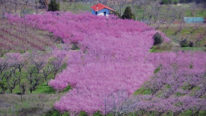 Σε ένα ροζ πίνακα, έχει μεταμορφωθεί ο κάμπος Ημαθίας, με τις ανθισμένα οπωροφόρα δέντρα να δίνουν την αίσθηση παραμυθιού.