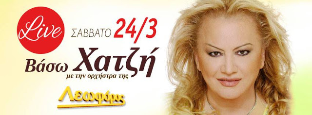 Σάββατο 24 Μαρτίου, στο Λεωφόρος Live stage, διασκεδάζουμε με την μοναδική Βάσω Χατζή και την ορχήστρα της.