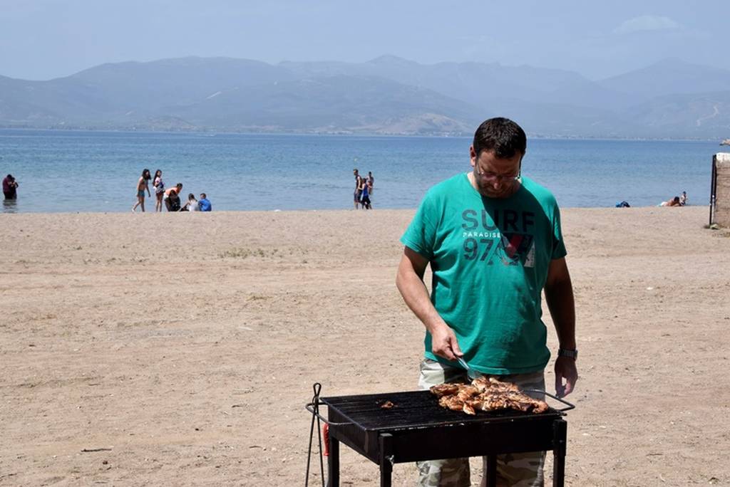 Ωστόσο, όπως θα δείτε στις φωτογραφίες κάποιοι δεν έμειναν εκεί. Έστησαν στην παραλία γλέντι με οβελία στη σούβλα!