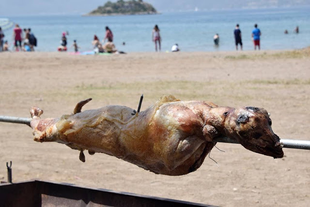 Ωστόσο, όπως θα δείτε στις φωτογραφίες κάποιοι δεν έμειναν εκεί. Έστησαν στην παραλία γλέντι με οβελία στη σούβλα!
