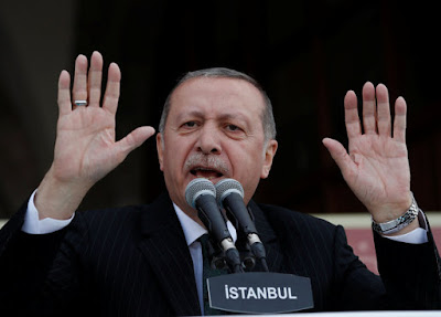 Σε ομιλία του, ο Τούρκος πρόεδρος χαρακτήρισε τους οίκους αξιολόγησης «σαλτιμπάγκους», λέγοντας πως «τη γείτονα που χρεοκόπησε και τελείωσε την ανέβασαν 4 βαθμίδες. Αυτοί παίρνουν νέα δανεικά και ζουν με αυτά. Δεν μπορούν να πληρώνουν τους μισθούς των δημοσίων υπαλλήλων και ξαφνικά την ανεβάζουν 4 βαθμούς. Πώς γίνεται αυτό; Για την Ελλάδα λέω».
