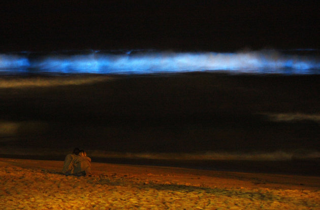 Η άνθιση των φυκιών παρατηρήθηκε αυτή την εβδομάδα φωτίζοντας τα κύματα κατά μήκος μιας παράκτιας γραμμής μήκους 15 μιλίων.