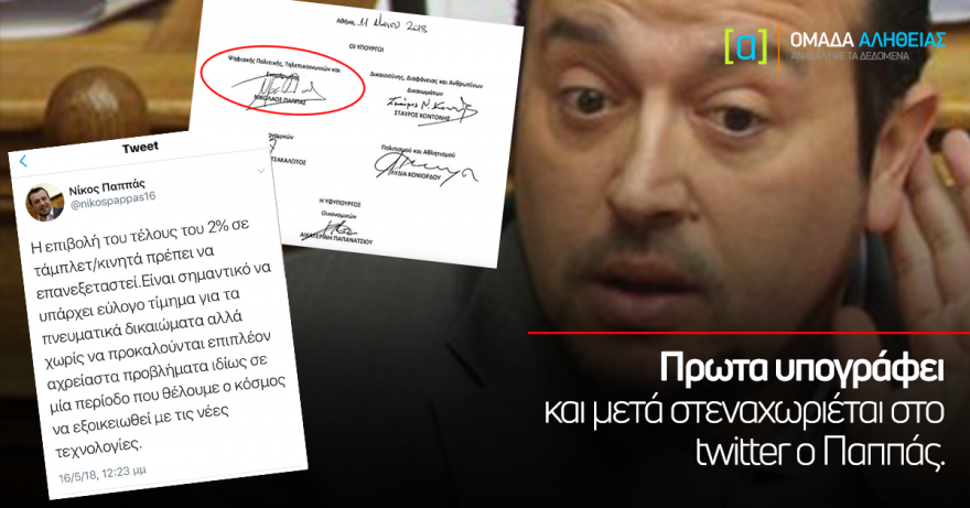 Ο Παππάς ζητά επανεξέταση του φόρου για τα κινητά που υπέγραψε ο ίδιος λίγες μέρες πριν!…