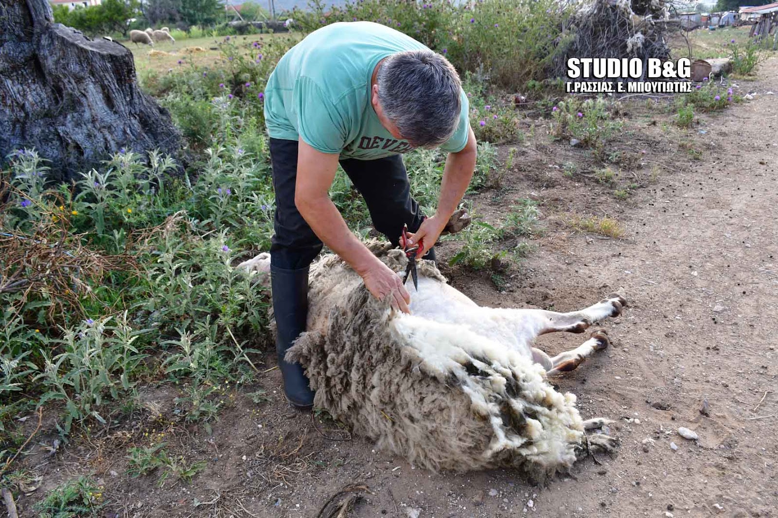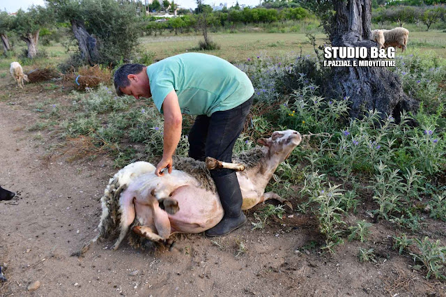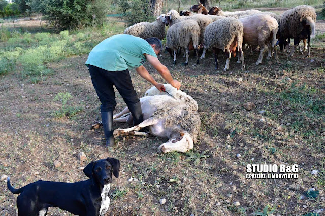 Ο αγρότης Αριστείδης Τσιρίκος από το Ναύπλιο, κουρεύει τα πρόβατα του με τον παραδοσιακό τρόπο, Πέμπτη 24 Μαΐου 2018.H κουρά των προβάτων και η παραγωγή μαλλιού για την υφαντική έπαιζε σπουδαίο ρόλο.