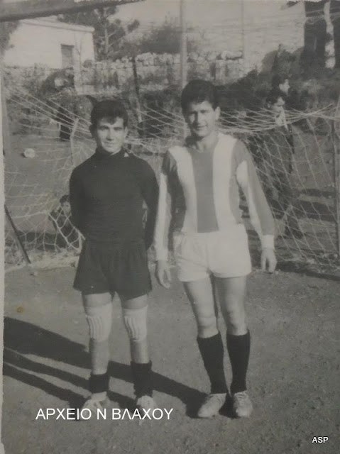 Από αριστερά ο Γιώργος Βλάχος που “εφυγε” νωρίς και άδικα . Φύλαξε την εστία του Ολυμπιακού, ήταν δυνατός, πολύ σκληρός θα έλεγε κάποιος και ευλύγιστος. Οταν αποσύρθηκε μάζεψε τα παιδιά από τις αλάνες και τα έβαλε στα γήπεδα, να αθλούνται. Τα αγαπούσε και τα συμβούλευε.Στη συνέχεια ήταν για πολλά χρόνια προπονητής του ΑΟΛ