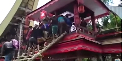 «Καθώς είχαν σηκώσει το φέρετρο για να τοποθετηθεί μέσα στον πύργο, ξαφνικά η σκάλα υποχώρησε και το φέρετρο έπεσε πάνω στον άνδρα» είπε ο αρχηγός της αστυνομίας Julianto Sirait.