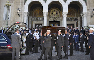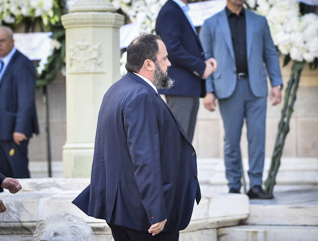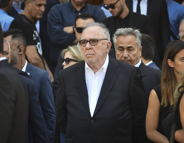 Λίγο πριν την έναρξη της εξοδίου ακολουθίας έφτασαν στον Μητροπολιτικό Ναό, μεταξύ άλλων, ο πρωθυπουργός, Αλέξης Τσίπρας, ο αντιπρόεδρος της ΝΔ, Άδωνις Γεωργιάδης, ο δήμαρχος Πειραιά, Γιάννης Μώραλης, ο επιχειρηματίας, Βαγγέλης Μαρινάκης, ο πρώην υπουργός, Κώστας Λαλιώτης, η δημοσιογράφος, Έλλη Στάη, ο ποινικολόγος, Αλέξανδρος Λυκουρέζος, καθώς και πολλοί πρώην παίκτες και προπονητές του Ολυμπιακού.