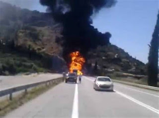 Φωτιά σε φορτηγό ψυγείο με βλάβη στα φρένα στην Εθνική Οδό Αθηνών-Κορίνθου στο ρεύμα προς Αθήνα τις Πρωινές ώρες 3.30πμ στο 64ο χιλιόμετρο δίπλα σε βενζινάδικο ….
