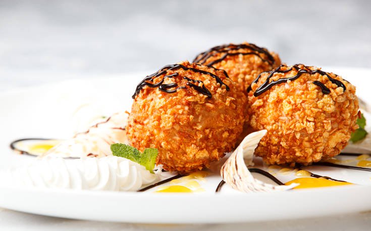 Σε 2 παρτίδες, τηγανίστε τις μπάλες παγωτού για 10-15 δευτερόλεπτα μέχρι να ροδίσουν.