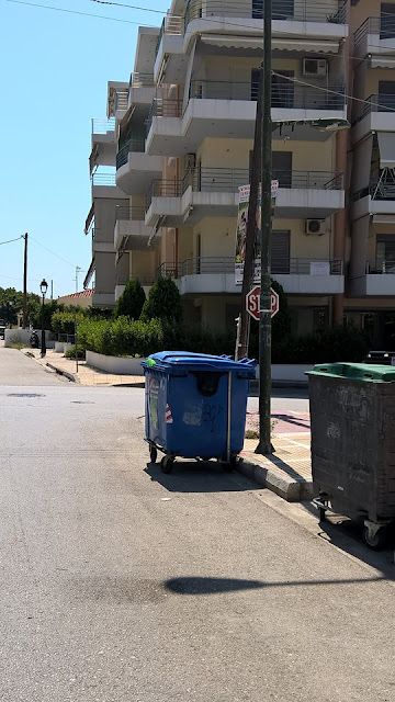 ΚΟΥΙΖ Νο 2: Βρείτε το STOP. Βρισκόμαστε ένα στενό πιο πάνω, στην Καραϊσκάκη, στη γωνία που συναντά τη Μάτση. (ΟΚ, εδώ τα πράγματα είναι λίγο καλύτερα. Παρεμβάλλονται μόνο μερικοί κάδοι σκουπιδιών και μια κολόνα της ΔΕΗ)