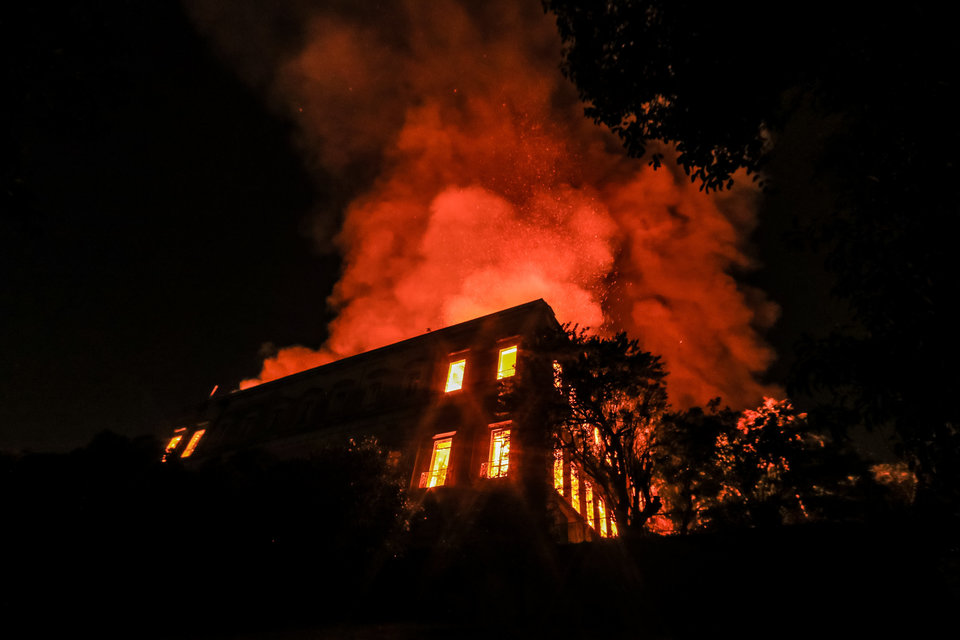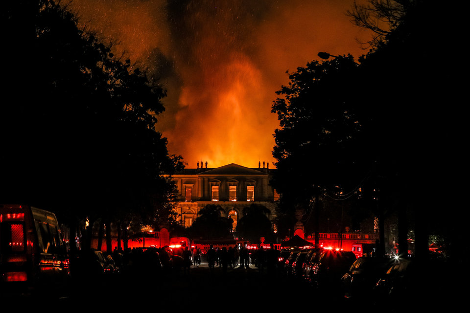 Τηλεοπτικά δίκτυα αναμετέδιδαν απευθείας πλάνα από την πυρκαγιά, η οποία ξέσπασε περί τις 19:30 (01:30 της Δευτέρας, ώρα Ελλάδας), μετά το κλείσιμο του μουσείου στις 17:00 και μαινόταν ανεξέλεγκτη σε όλο το κτίριο ως αργά το βράδυ.