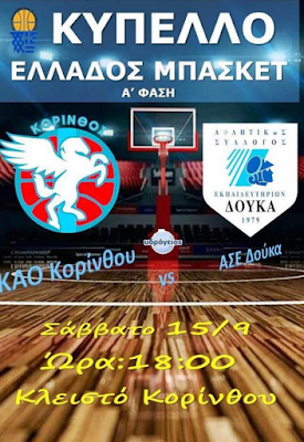 Αύριο Σάββατο 15 Σεπτεμβρίου, στις 18:00 το απόγευμα στο ΔΑΚ Κορίνθου, αντιμετωπίζει την ομάδα του ΔΟΥΚΑ στα πλαίσια της πρώτης φάσης της διοργάνωσης.