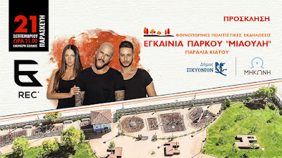 Στο πλαίσια των φθινοπωρινών εκδηλώσεων που διοργανώνει η «ΜΗΚΩΝΗ» του Δήμου Σικυωνίων αμέσως μετά την τελετή των εγκαινίων θα ακολουθήσει συναυλία με το νεανικό συγκρότημα REC.