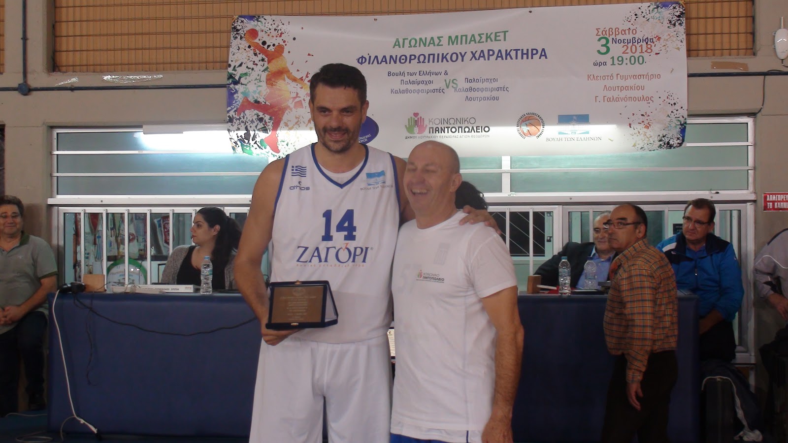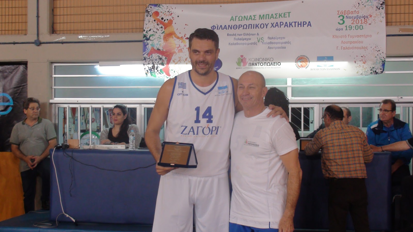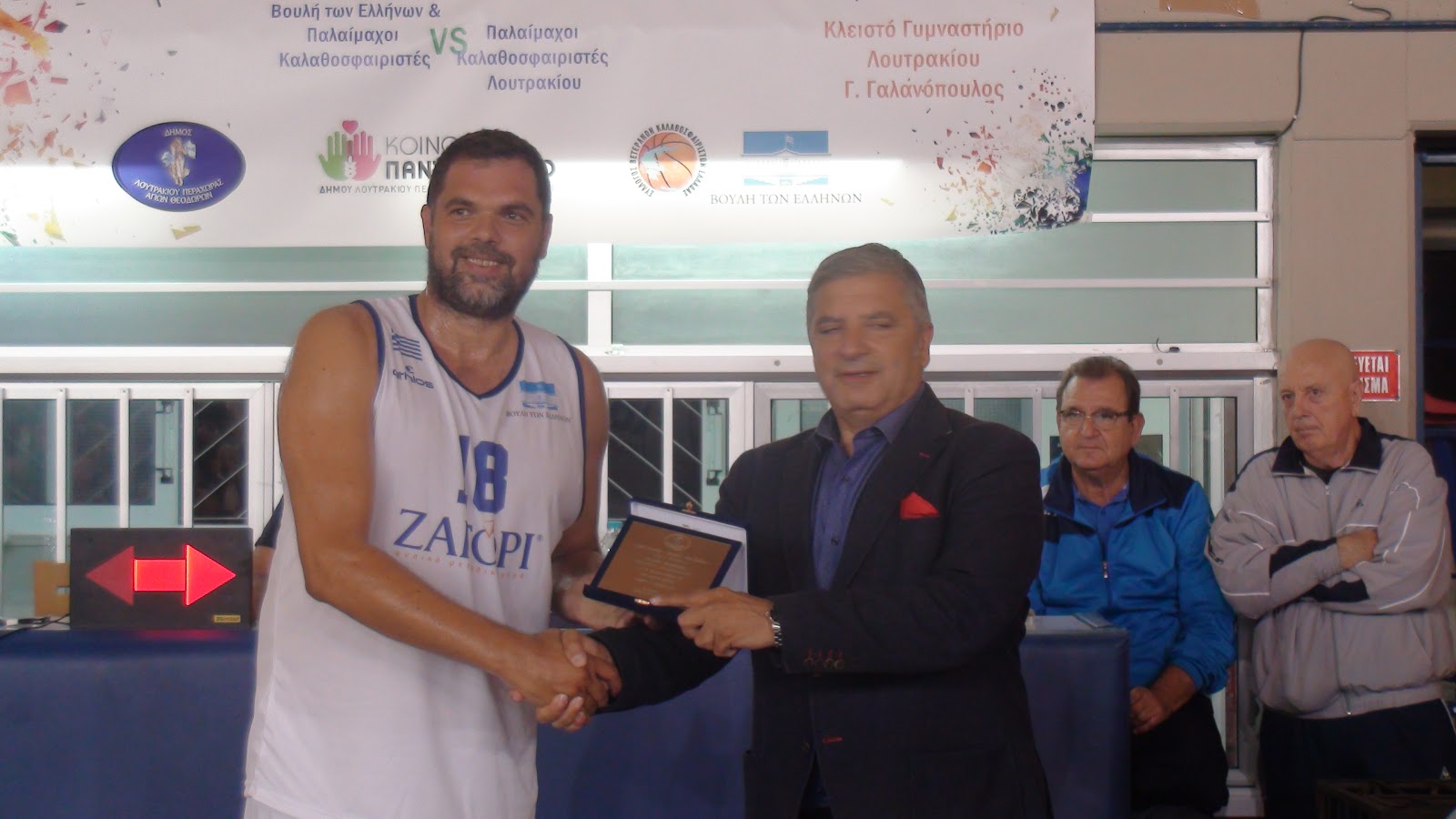 Ενας αγώνας Basket ανάμεσα στην ομάδα της Βουλής των Ελλήνων , Παλαίμαχων Καλαθοσφαιριστών και των Παλαίμαχων Καλαθοσφαιριστών Λουτρακίου.