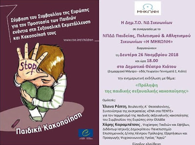 Την Δευτέρα 26 Νοεμβρίου, στις 18:00 μ.μ., θα πραγματοποιηθεί μία ενδιαφέρουσα εκδήλωση που δεν πρέπει να χάσετε στο Δημοτικό Θέατρο Κιάτου με θέμα «Πρόληψη της παιδικής σεξουαλικής κακοποίησης»…