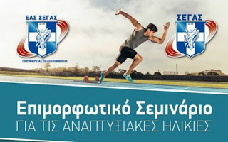 Η Ένωση Αθλητικών Σωματείων ΣΕΓΑΣ Περιφέρειας Πελοποννήσου σε συνεργασία με τον ΣΕΓΑΣ διοργανώνει επιμορφωτικό σεμινάριο για τις αναπτυξιακές ηλικίες την Κυριακή 20.1.2018 στο