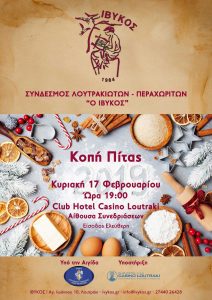 ΤΟΠΙΚΑΛουτράκιΠΟΛΙΤΙΣΜΟΣ Λουτράκι: Ο ΙΒΥΚΟΣ κόβει την πίτα του 14 Φεβρουαρίου 2019, 17:30 FacebookTwitterEmailCopy URLΤυπώνω - Advertisement - O ιστορικός πολιτιστικός σύλλογος Λουτρακίου “Ο ΙΒΥΚΟΣ” κόβει την πρωτοχρονιάτικη πίτα του. Την Κυριακή, 17 Φεβρουαρίου 2019 και ώρα 19.00 μ.μ. στην αίθουσα συνεδριάσεων του Καζίνο Λουτρακίου. Η είσοδος είναι ελεύθερη - Advertisement - ΑΦΗΣΤΕ ΜΙΑ ΑΠΑΝΤΗΣΗ Ακύρωση απάντησης Σχόλιο: εισάγετε το σχόλιό σας! Όνομα: παρακαλώ εισάγετε το όνομά σας εδώ Email: έχετε εισάγει εσφαλμένη διεύθυνση ηλεκτρονικού ταχυδρομείου! παρακαλώ εισάγετε εδώ την ηλεκτρονική σας διεύθυνση Ιστοσελίδα: αποθηκεύστε το όνομα, το ηλεκτρονικό ταχυδρομείο και τον ιστότοπό μου σε αυτό το πρόγραμμα περιήγησης για την επόμενη φορά που θα σχολιάσω. Δ Δείτε ακόμα Κορινθία Συνάντηση γενεών στο ΚΑΠΗ Κιάτου! (ΦΩΤΟ) Λουτράκι Λουτράκι: Συνεδριάζει το Δημοτικό Σμβούλιο την Τετάρτη 19 Νοεμβρίου ΤΟΠΙΚΑ Γ. Ψυχογιός: Τεράστια η ζημιά στα χωριά της Τενέας. Επίκαιρη Ερώτηση για την άμεση και δίκαιη αποζημίωση των παραγωγών ΤΟΠΙΚΑ Δήμος Βέλου-Βόχας: Ξεκίνησε ο διαγωνισμός και για τον αγωγό Ελληνοχώρι – Βέλο ΤΟΠΙΚΑ Πέτρος Τατούλης: «Η Κυβέρνηση συνεχίζει να υποβαθμίζει την Πελοπόννησο – Η Περιφερειακή Αρχή Πτωχού σιωπά και χειροκροτεί» Σχετικά άρθρα Κορινθία Συνάντηση γενεών στο ΚΑΠΗ Κιάτου! (ΦΩΤΟ) Λουτράκι Λουτράκι: Συνεδριάζει το Δημοτικό Σμβούλιο την Τετάρτη 19 Νοεμβρίου ΤΟΠΙΚΑ Γ. Ψυχογιός: Τεράστια η ζημιά στα χωριά της Τενέας. Επίκαιρη Ερώτηση για την άμεση και δίκαιη αποζημίωση των παραγωγών ΤΟΠΙΚΑ Δήμος Βέλου-Βόχας: Ξεκίνησε ο διαγωνισμός και για τον αγωγό Ελληνοχώρι – Βέλο