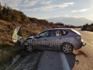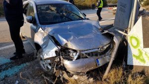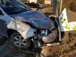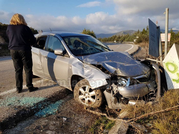 Εκεί ανετράπη πριν σταματήσει πάνω σε μία από τις προειδοποιητικές πινακίδες.