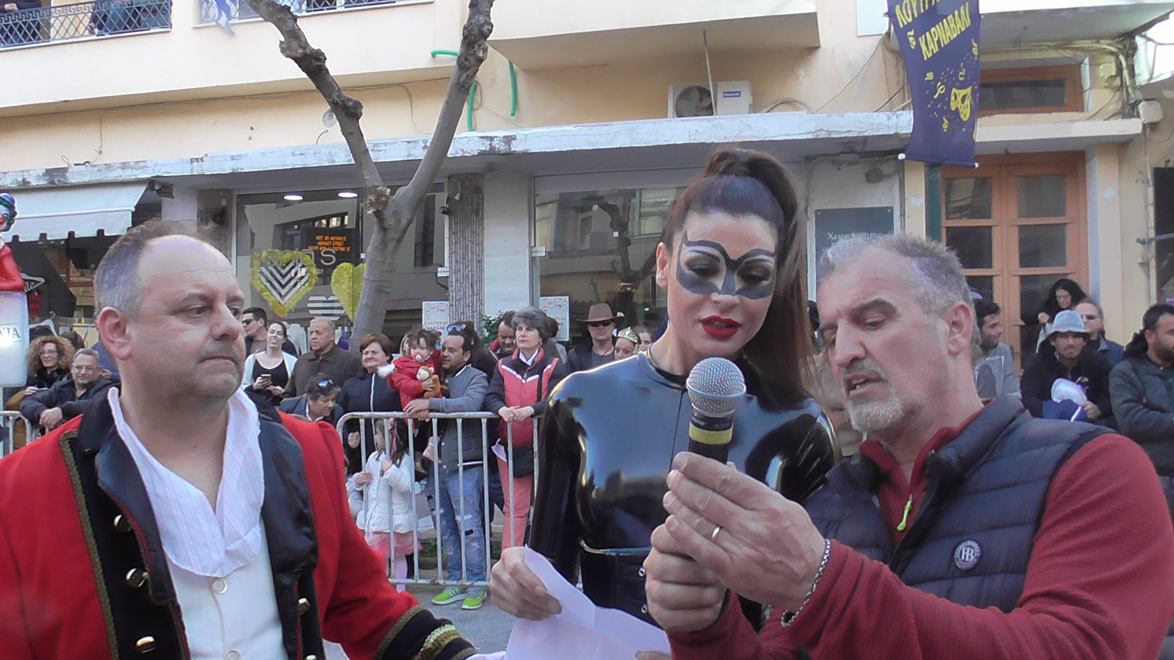 Πολύ καλή η παρουσιάστρια του φετινού καρναβαλιού, η κ. Ειρήνη Κολιδά, η οποία εκτός του ότι παρουσίαζε, συνομιλούσε με τον κόσμο και φωτογραφήθηκε με όλους , όσους της το ζήτησαν. Αγκάλιαζε τα μικρά παιδιά που έτρεχαν στην αγκαλιά της και είχε μια πρωτοφανή αμεσότητα με τον κόσμο. Απλή και ωραία !