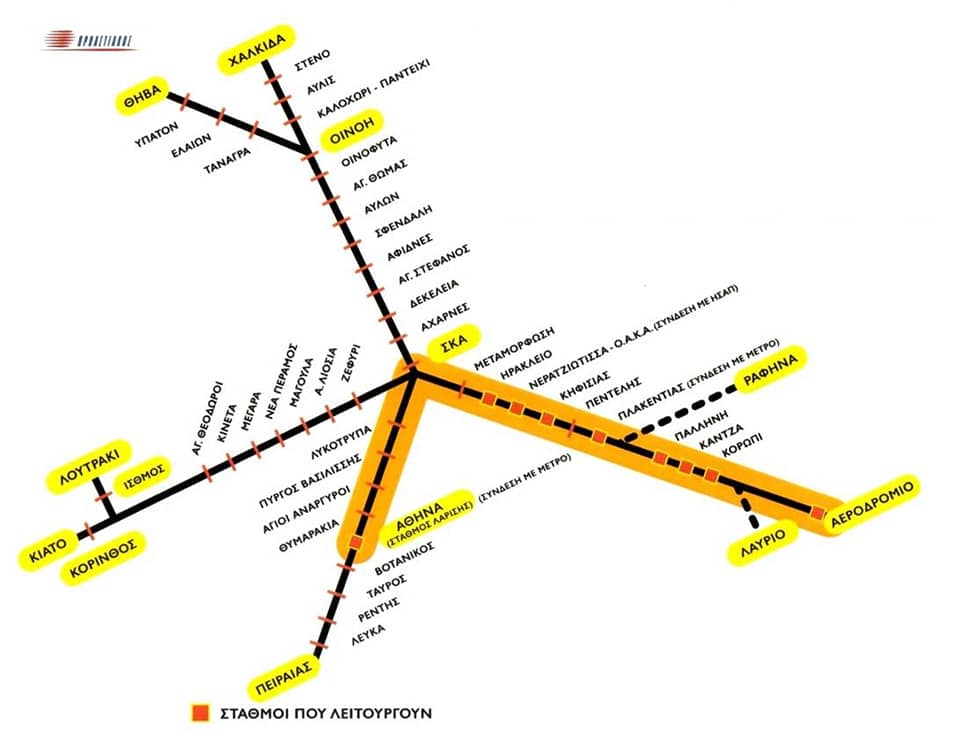 Το σχέδιο όλων των επεκτάσεων του νέου προαστιακού σιδηροδρόμου Αθηνών, στο οποίο περιλαμβάνεται και η επέκταση προς Λουτράκι
