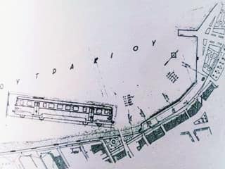 Σκαρίφημα που δείχνει την αρχική απόληξη των οτομοτρίς στην παραλία Λουτρακίου