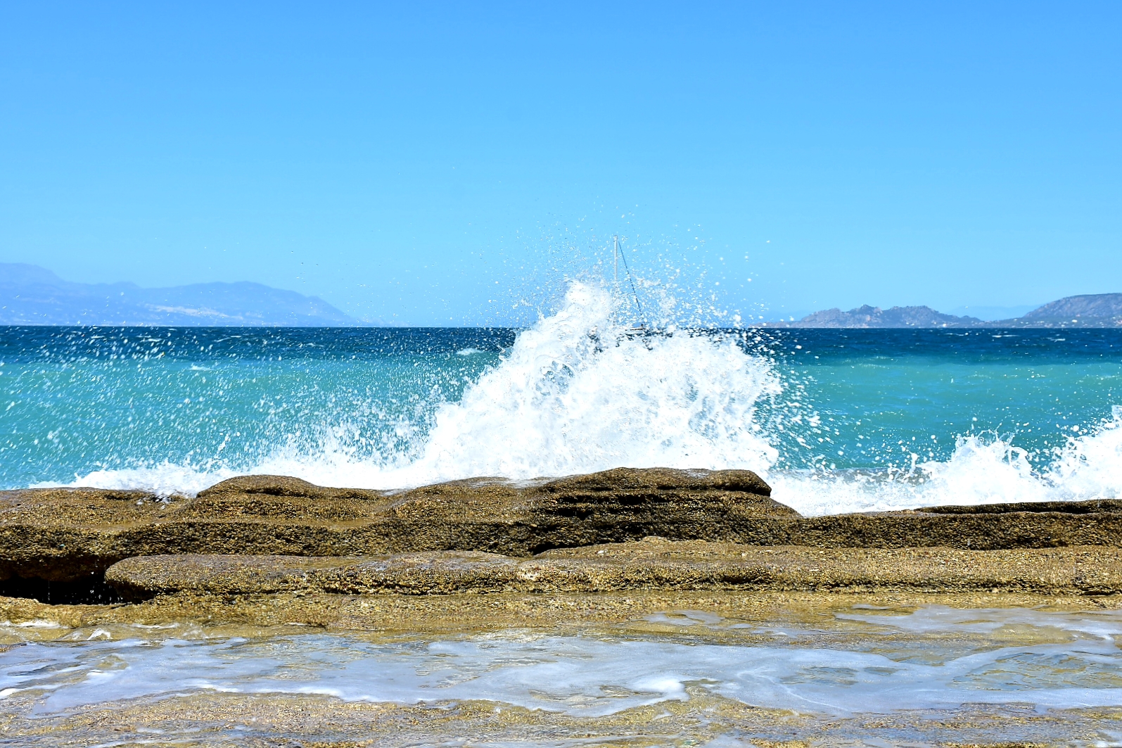 Γαλήνια θάλασσα μέσα στην άπνοια και την κατανυκτική ατμόσφαιρα της Μεγάλης Παρασκευής, μέχρι τα γνωστά εξωτικά μας κύματα σε μία κατάμεστη παραλία την Δευτέρα του Πάσχα.