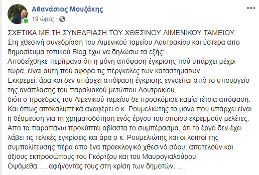 Αντιδράσεις και σχόλια προκλήθηκαν μετά το δημοσίευμα του loutrakiblog.gr αναφορικά με τη συνεδρίαση του Λιμενικού Ταμείου στο Λουτράκι.