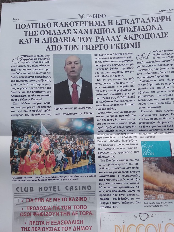 Καταπέλτης ο άνθρωπος που ήταν υπεύθυνος της τότε ομάδας HANDBALL του ΠΟΣΕΙΔΩΝΑ από το δημοσίευμα τοπικής εφημερίδας του Λουτρακίου…