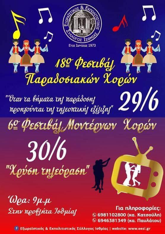 Ο Εξωραϊστικός & Εκπολιτιστικός Σύλλογος Ισθμίας ολοκλήρωσε έναν ακόμη κύκλο δραστηριοτήτων και μας προσκαλεί στις εκδηλώσεις του να τιμήσουμε την παράδοση και να απολαύσουμε μια καλοκαιρινή βραδιά!