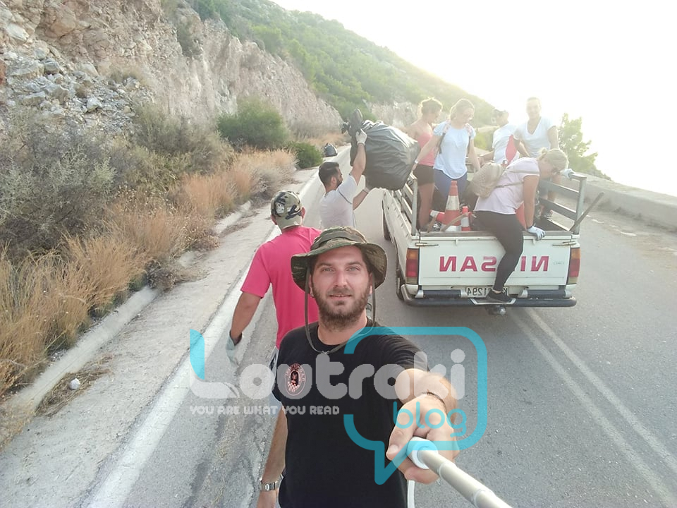 Ποιος καύσωνας και πράσινα άλογα;;Δε νιώθουν ! Είναι απίστευτοι ! Είναι εθελοντές !!!! Αγαπάνε τον τόπο μας και το δείχνουν !! Η παρέα των φίλων μας που ξεκίνησε τους καθαρισμούς των παραλιών του δήμου μας, βγήκε και στους δρόμους, ξεκινώντας από τον Περιφερειακό του Λουτρακίου !