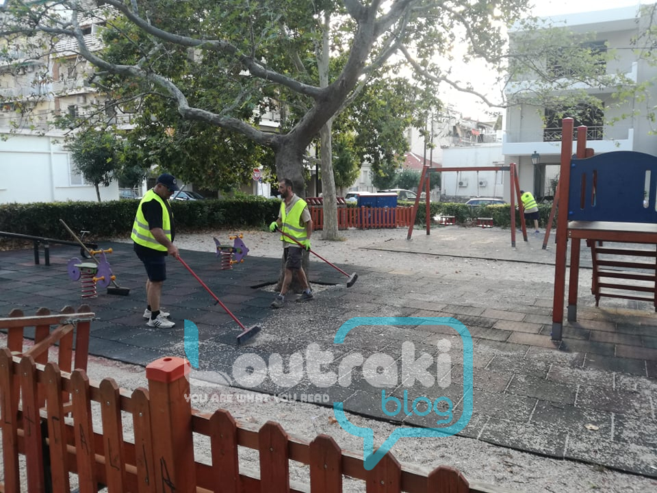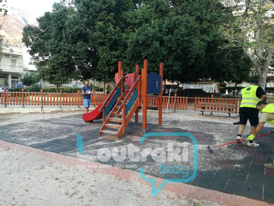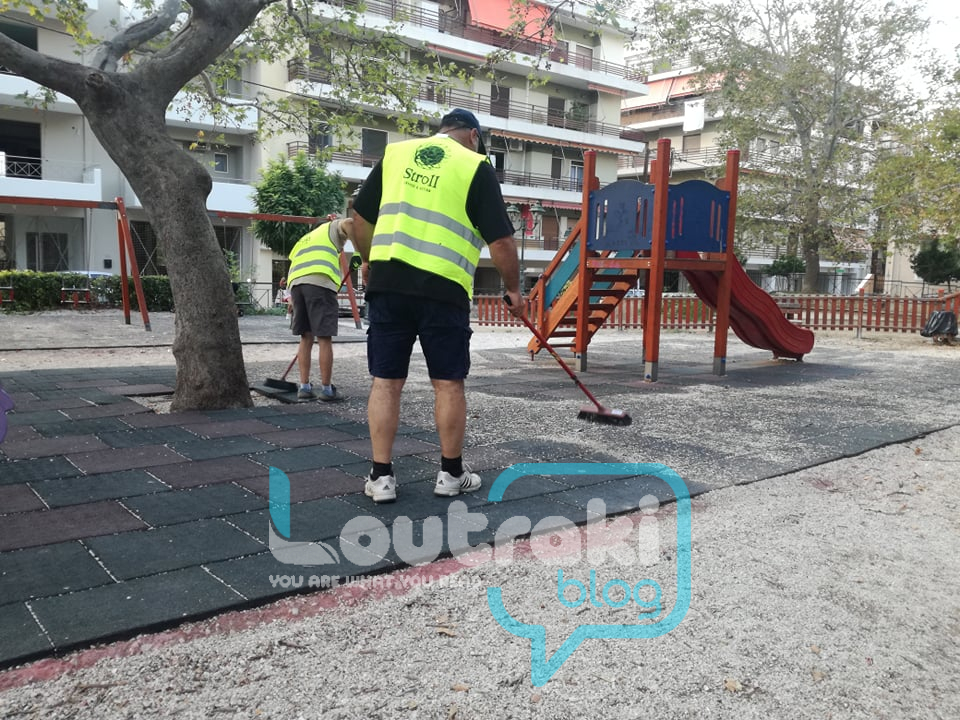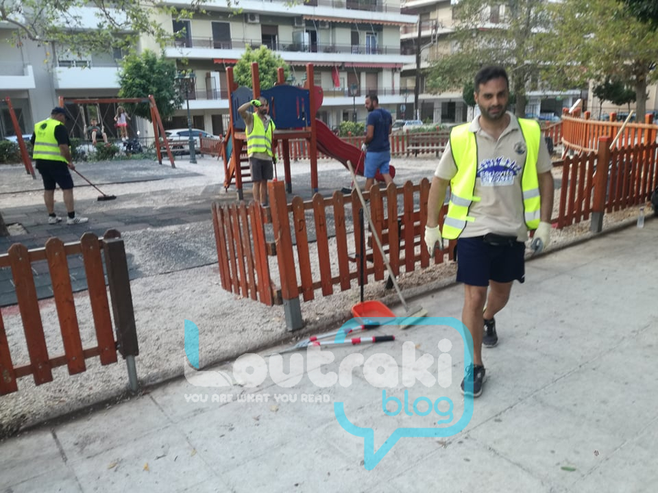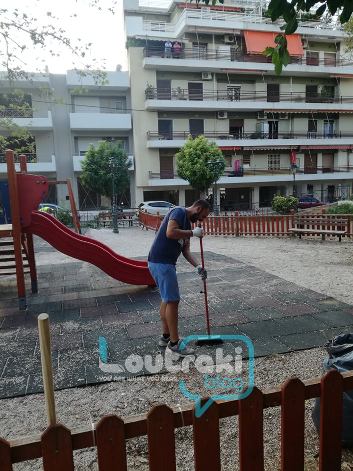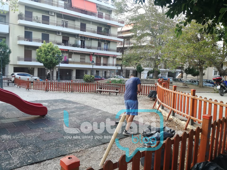 “γυαλί” έκαναν το Πάρκο του παιδιού οι εθελοντές εν δράσει , στο Λουτράκι! Πήραν επ΄ώμου για μια ακόμη φορά τις σκουπες, τα φαράσια τους, τα χλοοκοπτικά τους και καθάρισαν το παρκάκι, κουρεύοντας και όλα τα φυτά που υπάρχουν  σε αυτό περιμετρικά !