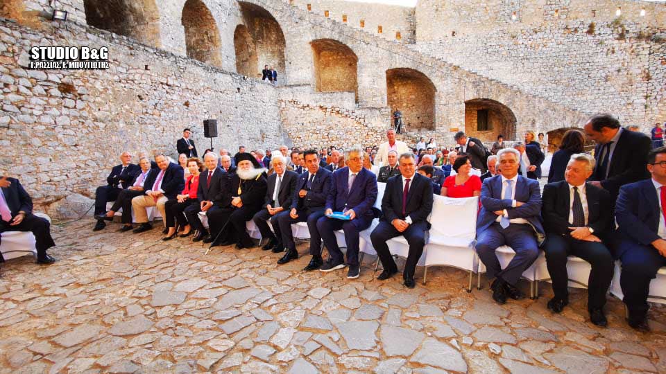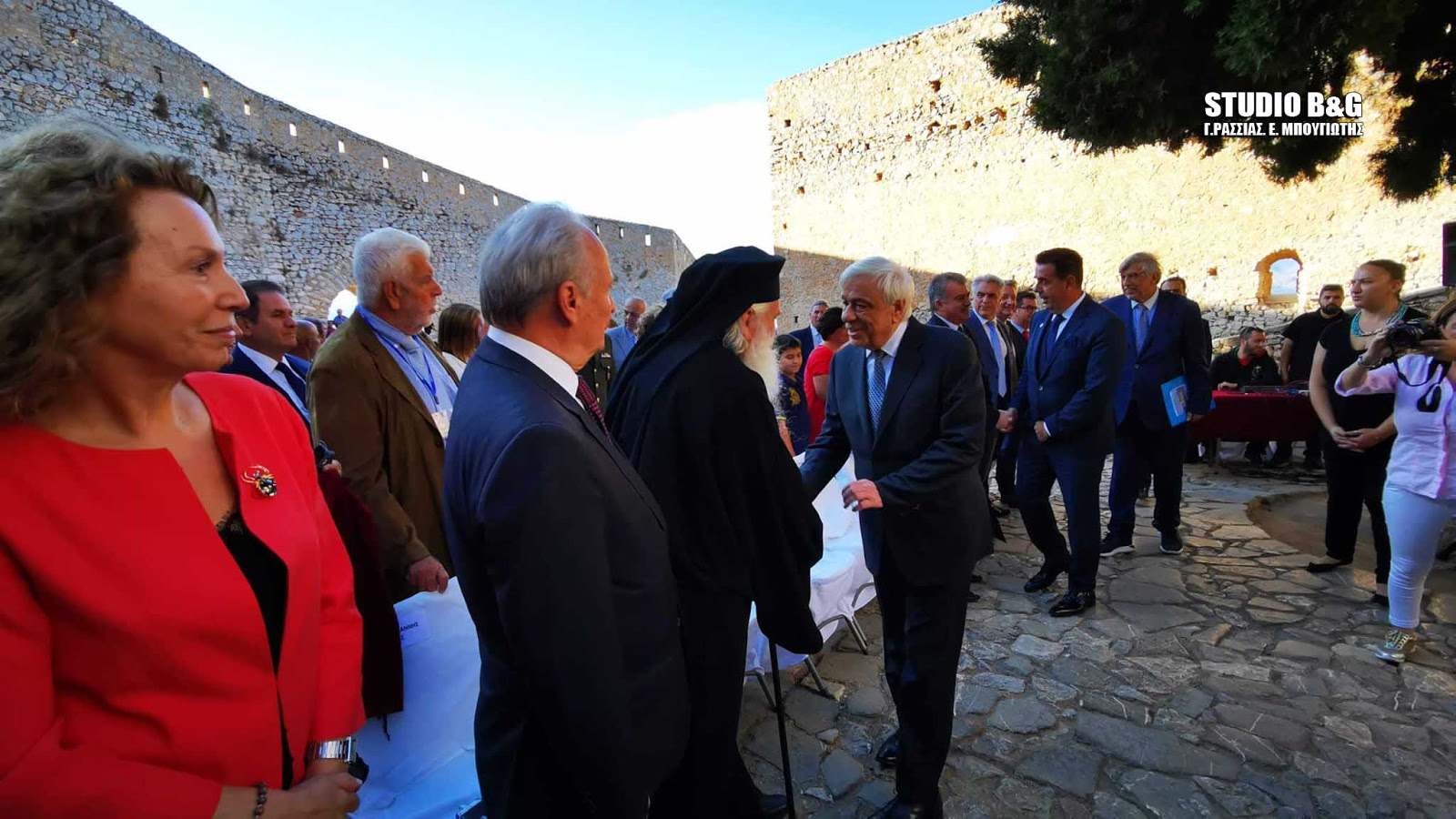 Ο κύριος Παυλόπουλος παρέστη και επέδωσε βραβεία, σε τελετή στο κάστρο του Παλαμηδίου στο Ναύπλιο, στα πλαίσια του 15ου Σεμιναρίου Διεθνούς Δικαίου που διεξάγεται από τις 4 έως και τις 6 Οκτωβρίου στην ιστορική αίθουσα του Βουλευτικού.Η υποδοχή του Προέδρου της Δημοκρατίας στο Παλαμήδι έγινε από τον Δήμαρχο Ναυπλιέων κ. Δημήτριο Κωστούρο και τον Καθηγητή κ. Στέλιο Περράκη, ενώ η τελετή απόδοσης των βραβείων έγινε στον Προμαχώνα Αγίου Ανδρέα. Ακολούθησε η ανακοίνωση του Βραβείου «Α. Πολυζωίδης – Γ. Τερτσέτης» για τη Δικαιοσύνη και το Δίκαιο, από τον Δήμαρχο Ναυπλιέων, Δημήτριο Κωστούρο, η ανάγνωση της απόφασης του Δημοτικού Συμβουλίου από τον Πρόεδρο του Δημοτικού Συμβουλίου Σταύρο Αυγουστόπουλο, η παρουσίαση του τιμωμένου από τον Καθηγητή κ. Σ. Περράκη και η επίδοση του βραβείου «Α. Πολυζωίδης – Γ. Τερτσέτης» για τη Δικαιοσύνη και το Δίκαιο από τον Πρόεδρο της Δημοκρατίας, στον Πρόεδρο του Δικαστηρίου των Δικαιωμάτων του Ανθρώπου Καθηγητή κ. Λίνο-Αλέξανδρο Σισιλιάνο.