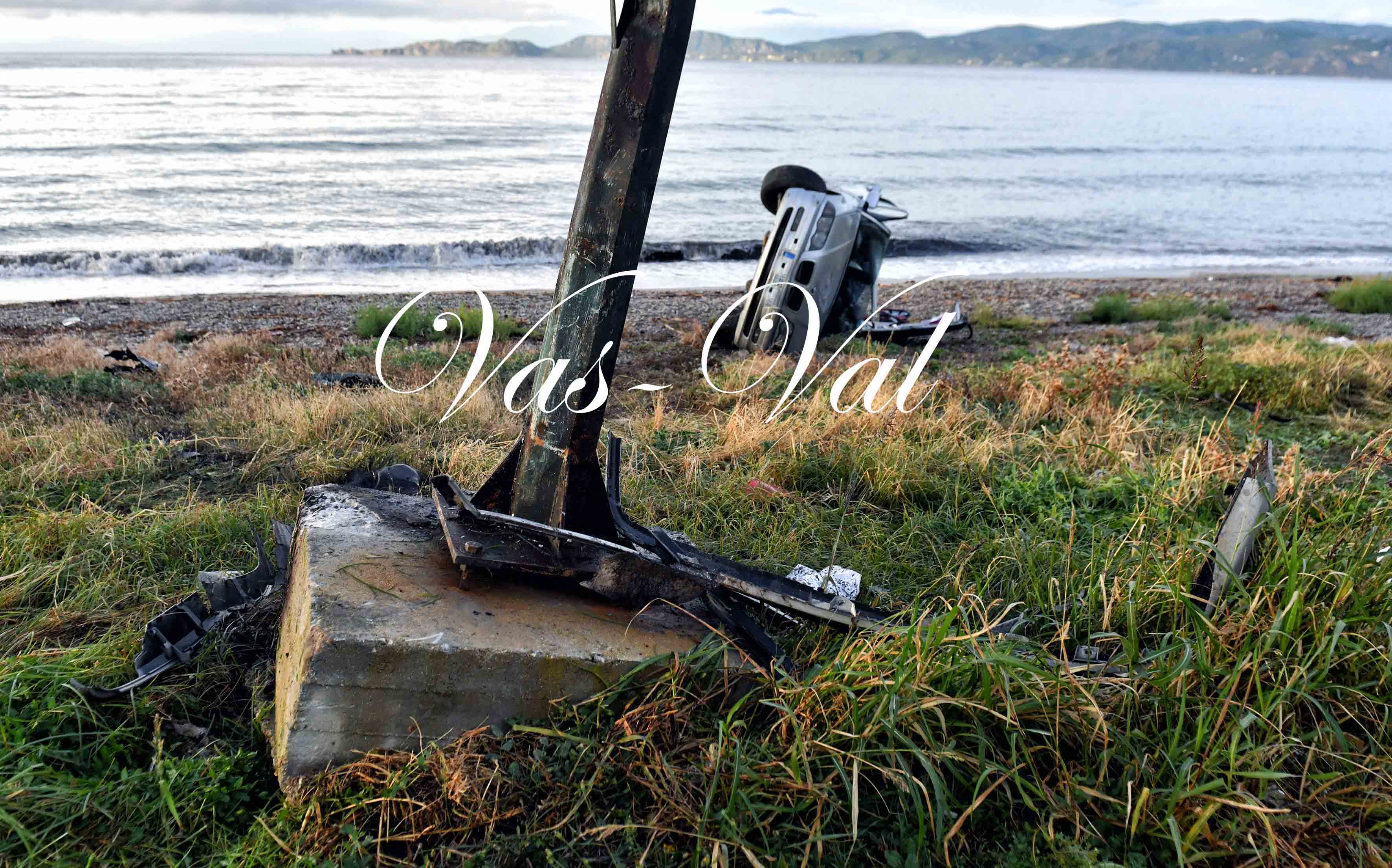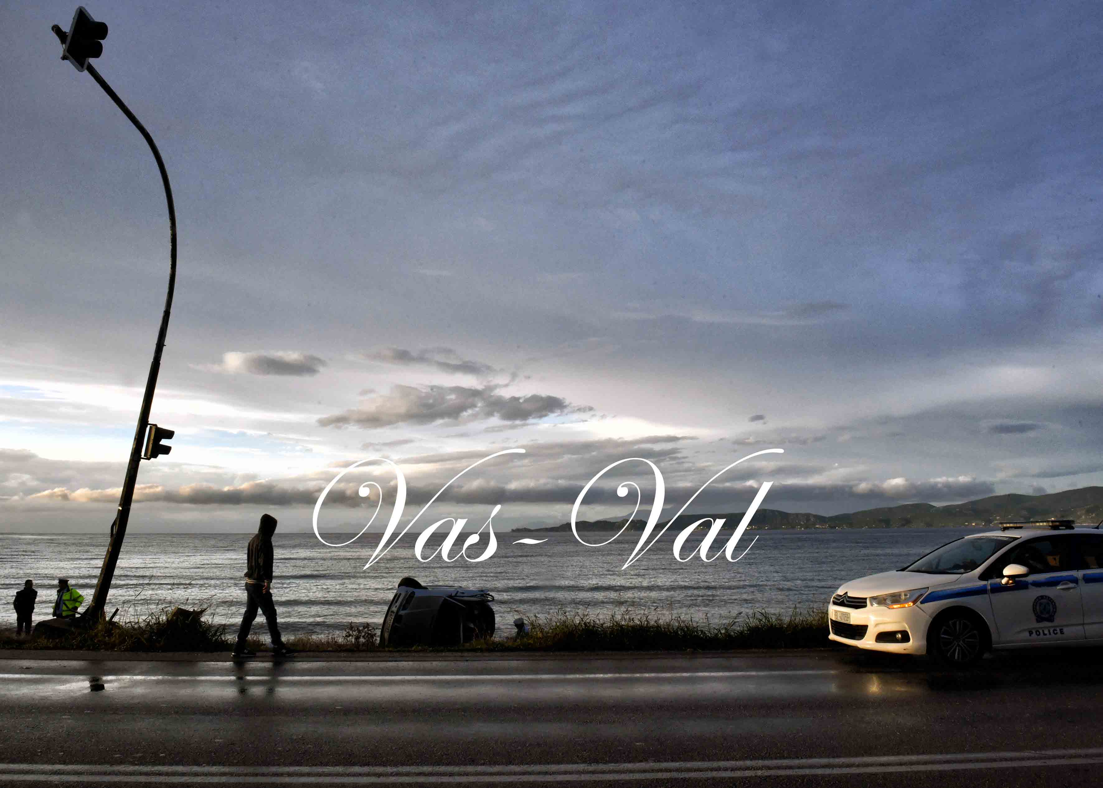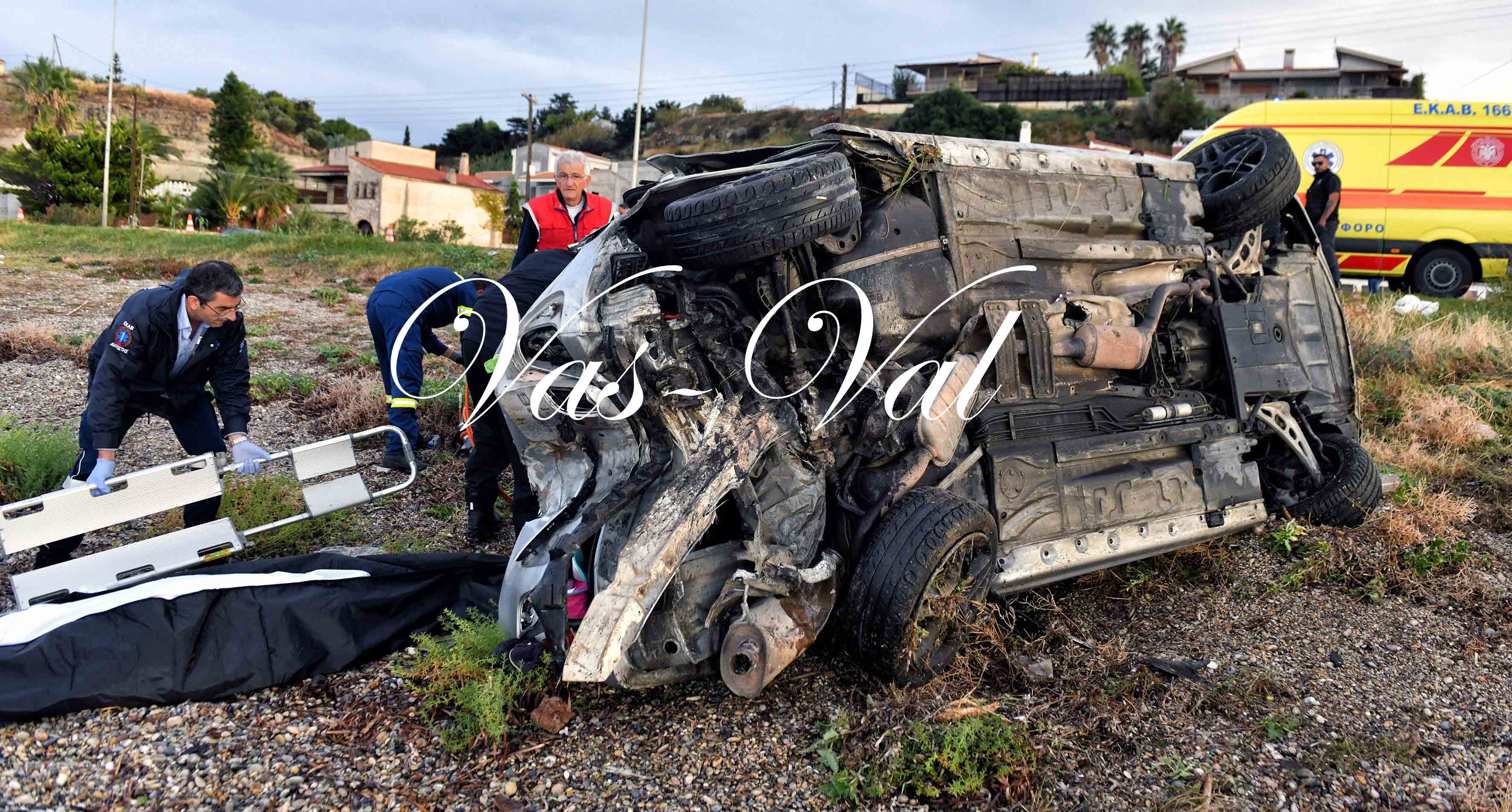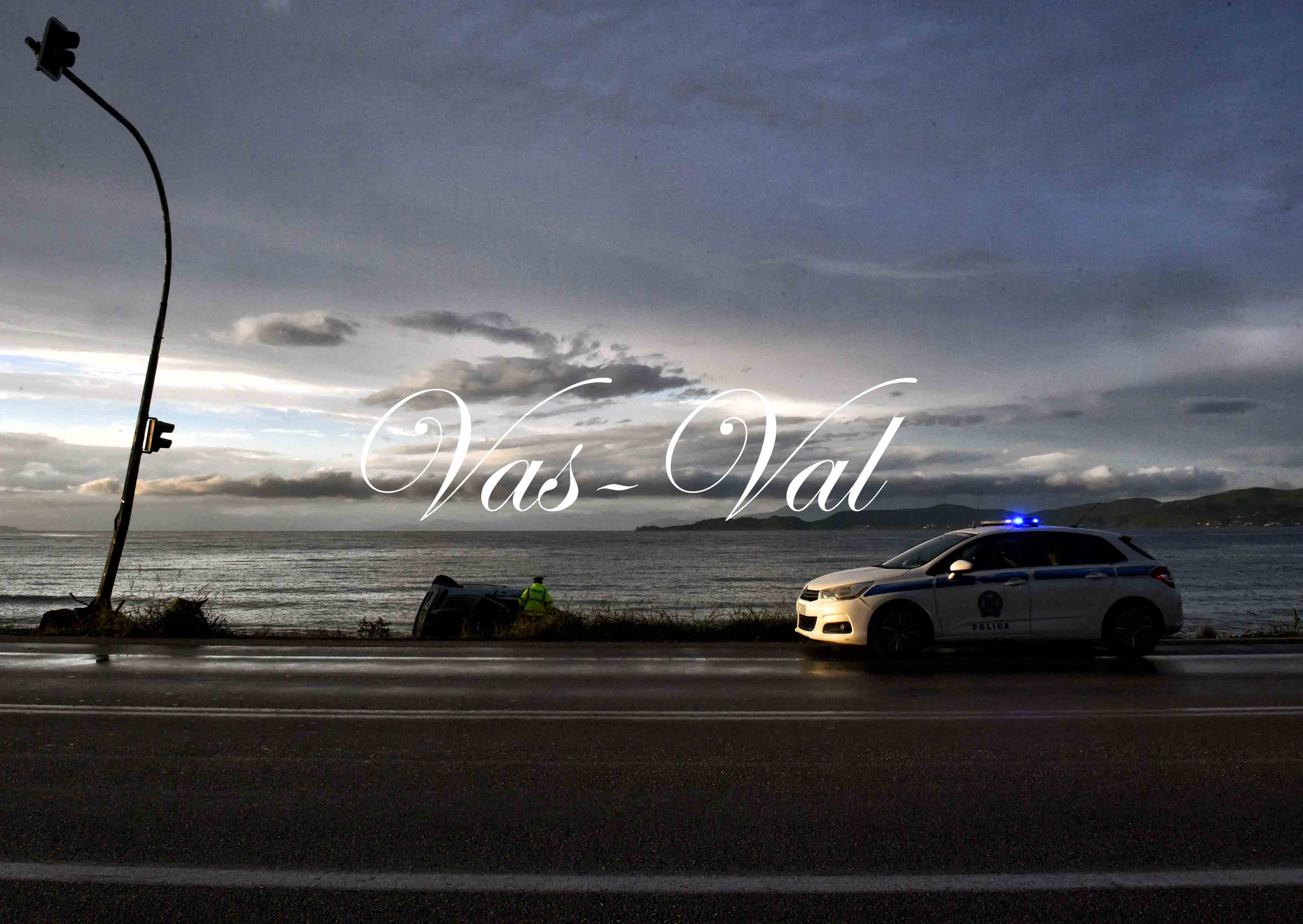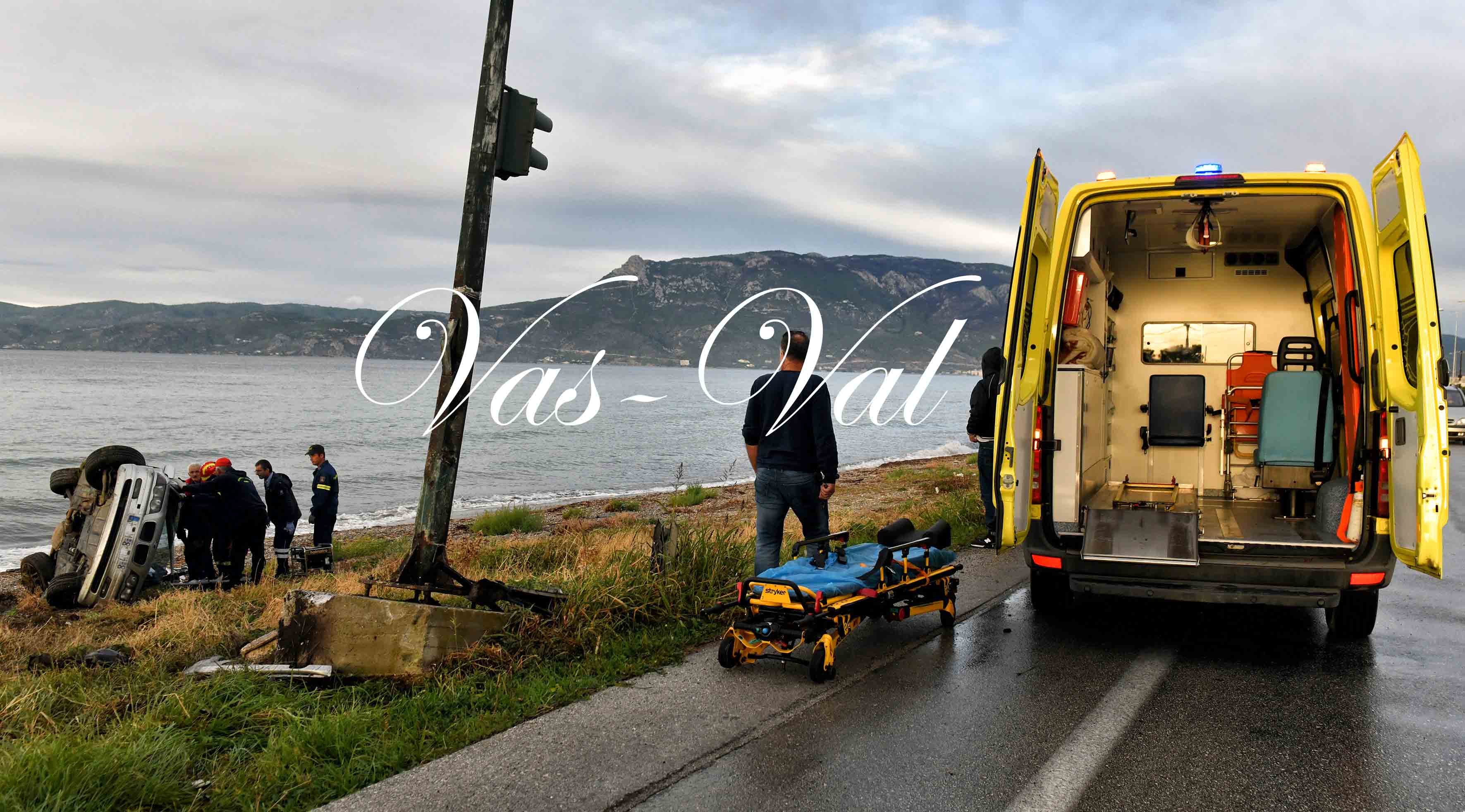 Το όχημα ανετράπη και κατέληξε στην παραλία στο ύψος του Κανταρέ της Κορίνθου στην Παλαιά Εθνική Οδό Κορίνθου – Πατρών.