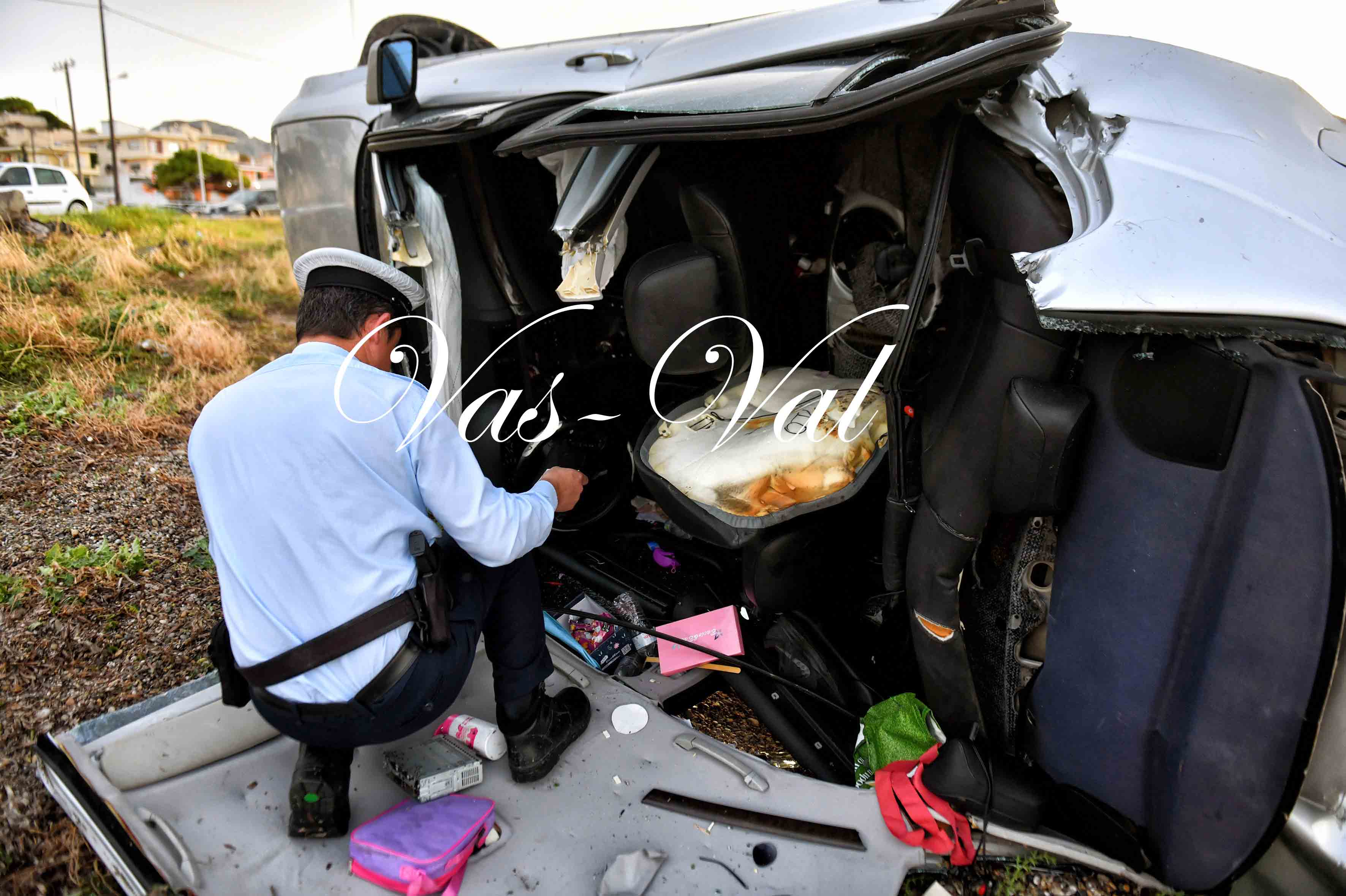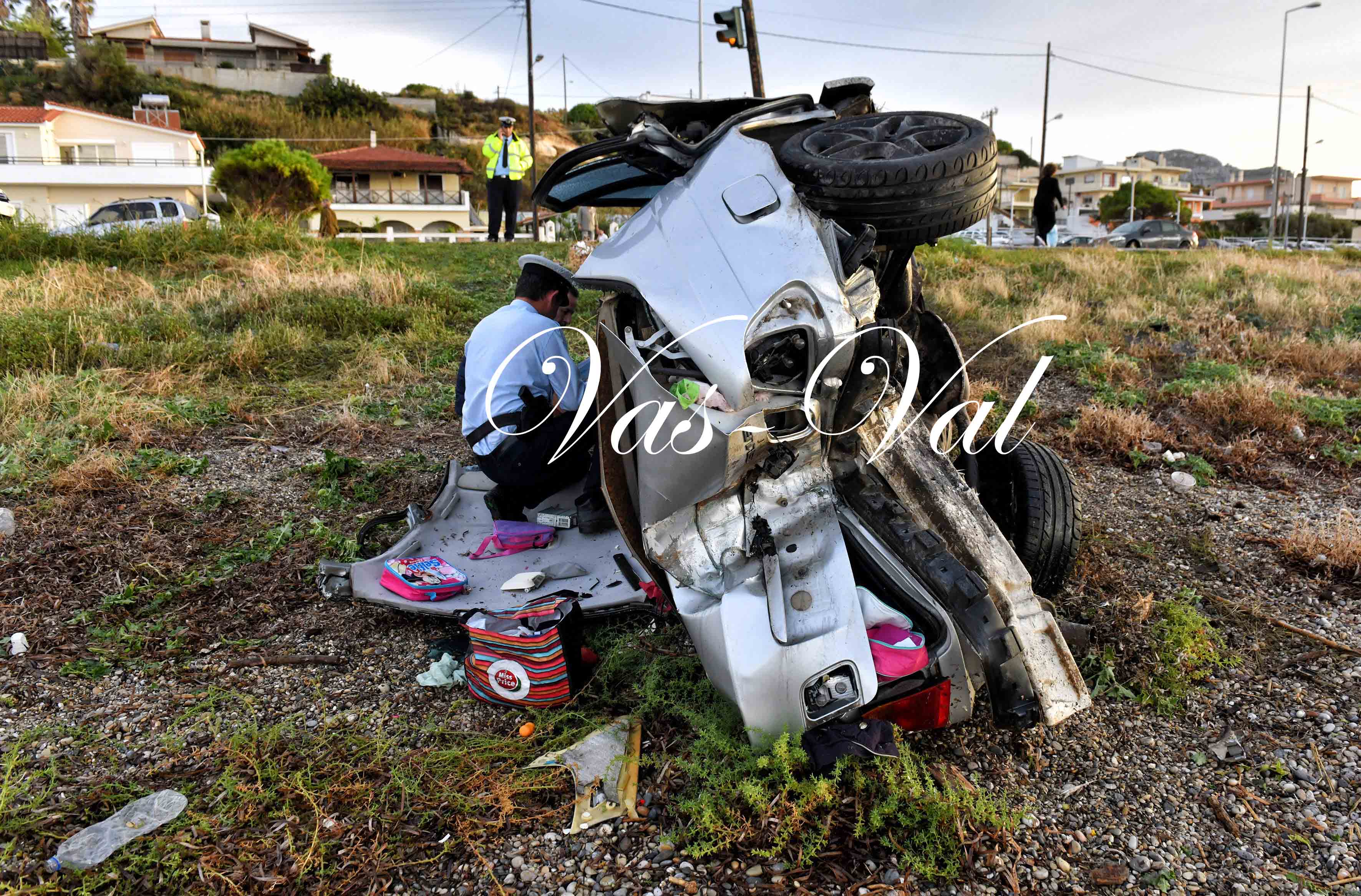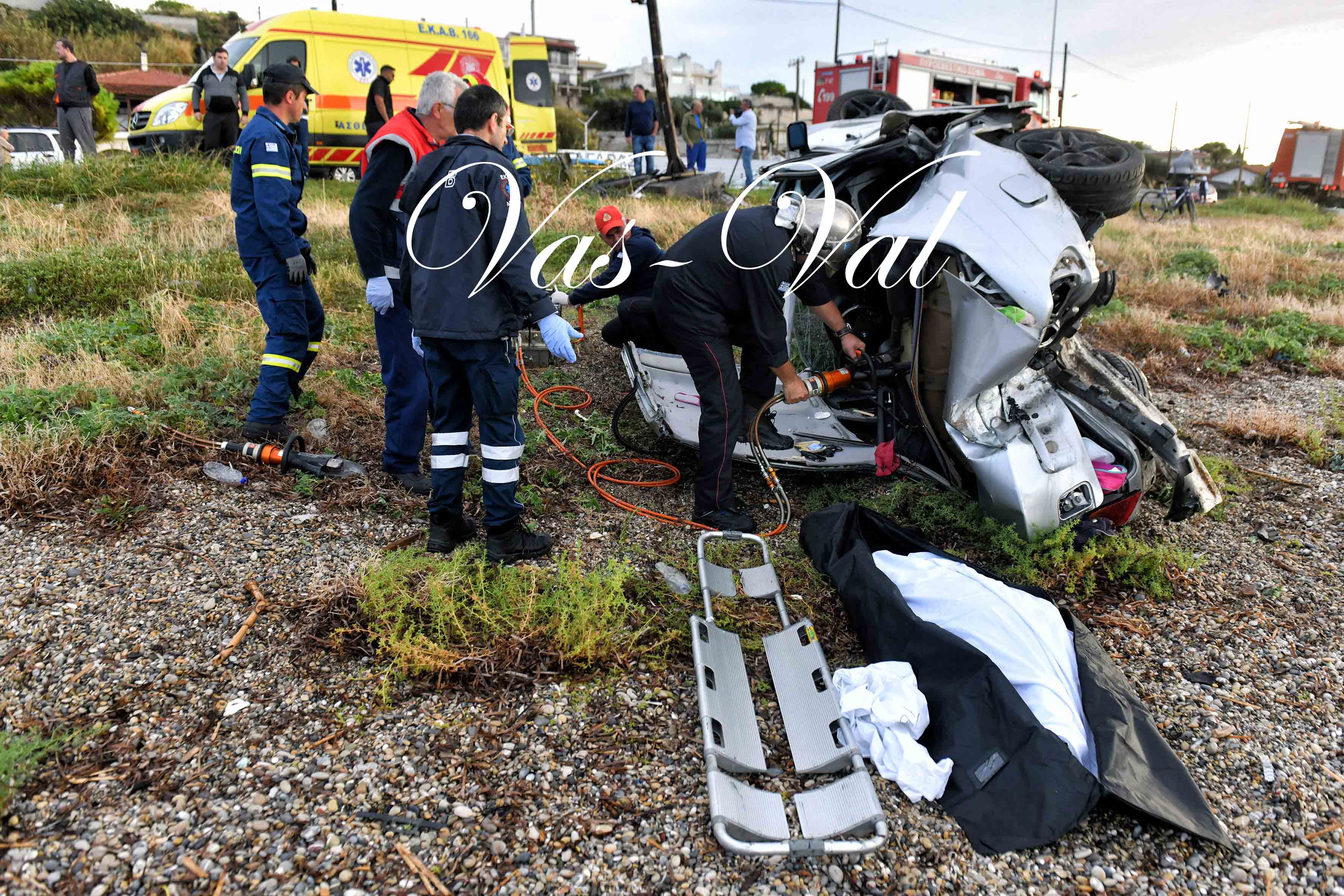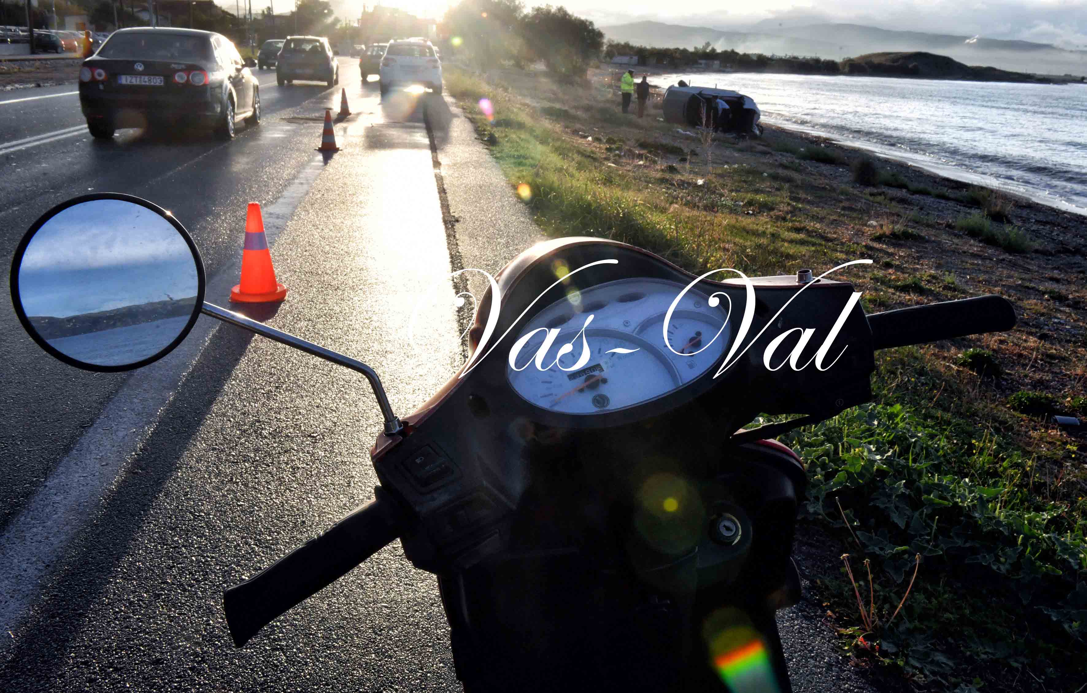 Το όχημα ανετράπη και κατέληξε στην παραλία στο ύψος του Κανταρέ της Κορίνθου στην Παλαιά Εθνική Οδό Κορίνθου – Πατρών.