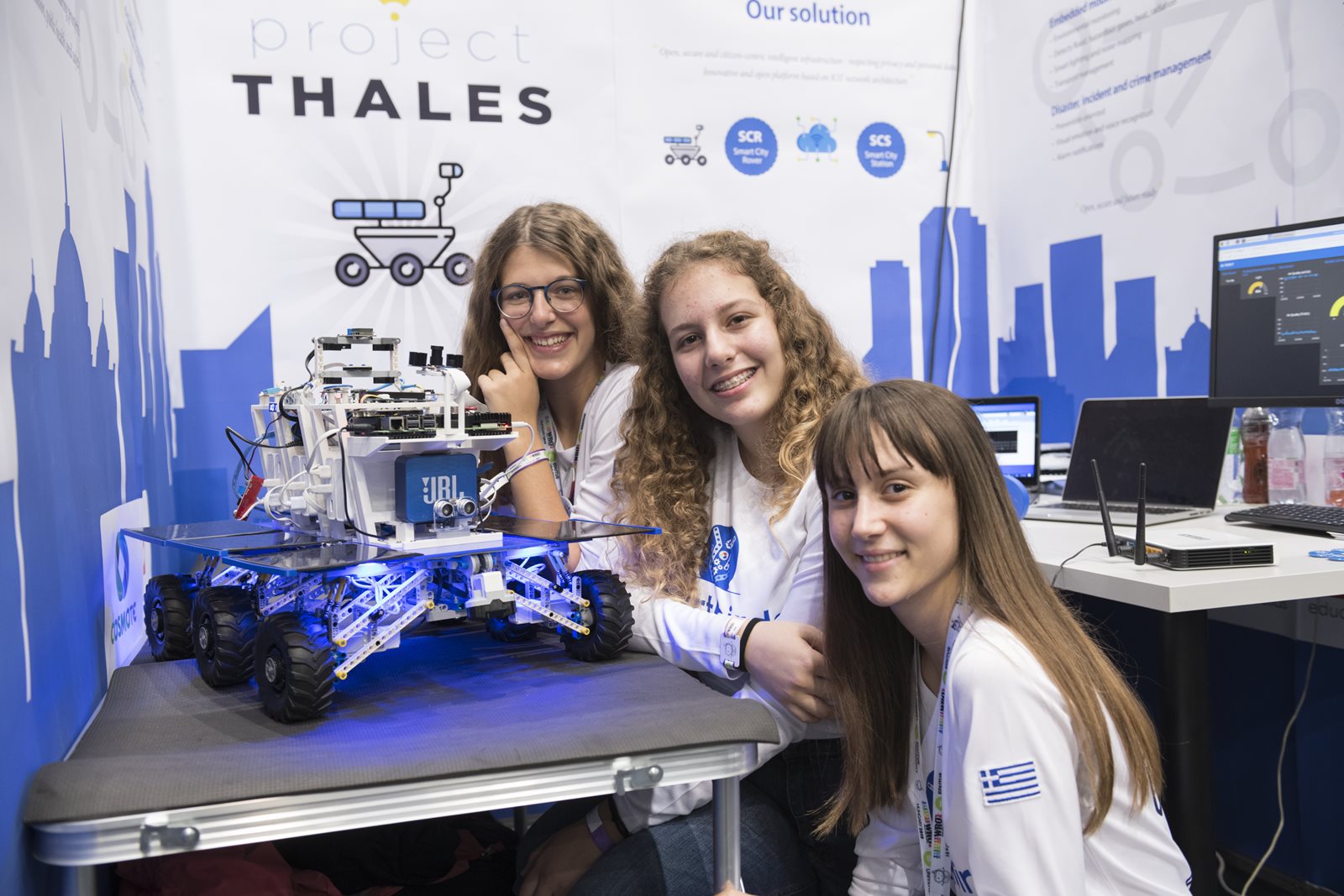 COSMOTE–WRO 2019: Η ομάδα SMARTBIRDS, με τις Εύα Λαμπροπούλου, Μαρία Παναγοπούλου και Μαρία Στεφανίδη που κατέκτησαν τη δεύτερη θέση στον κόσμο και αργυρό μετάλλιο στην κατηγορία Οpen Γυμνασίου στην Ολυμπιάδα Εκπαιδευτικής Ρομποτικής WRO 2019.