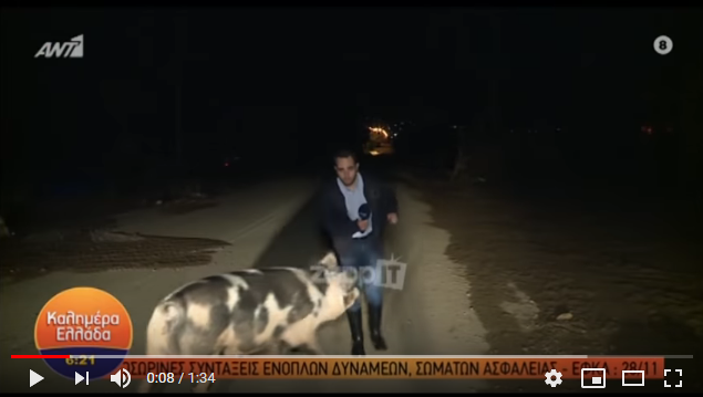 Θηλυκό γουρούνι κυνηγά τον ρεπόρτερ του Παπαδάκη! Τον δάγκωσε! Ούρλιαζε στον αέρα!