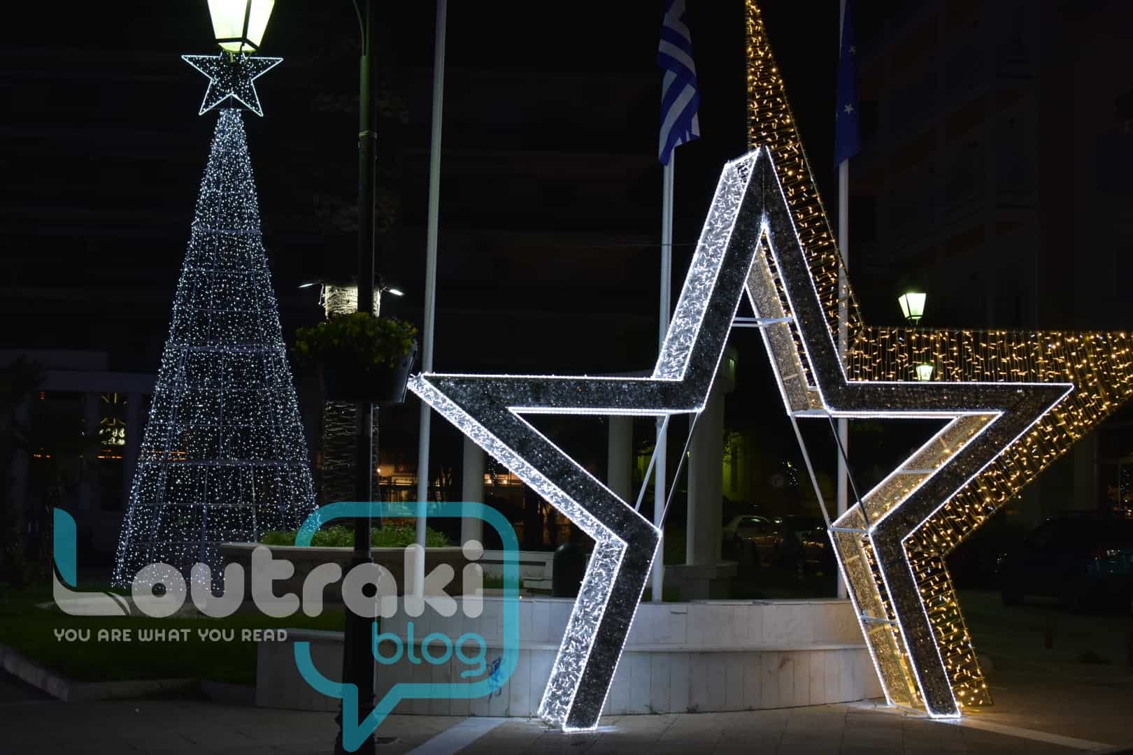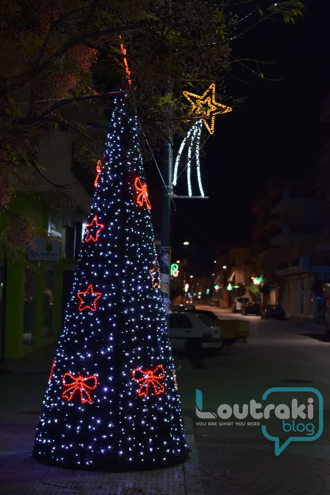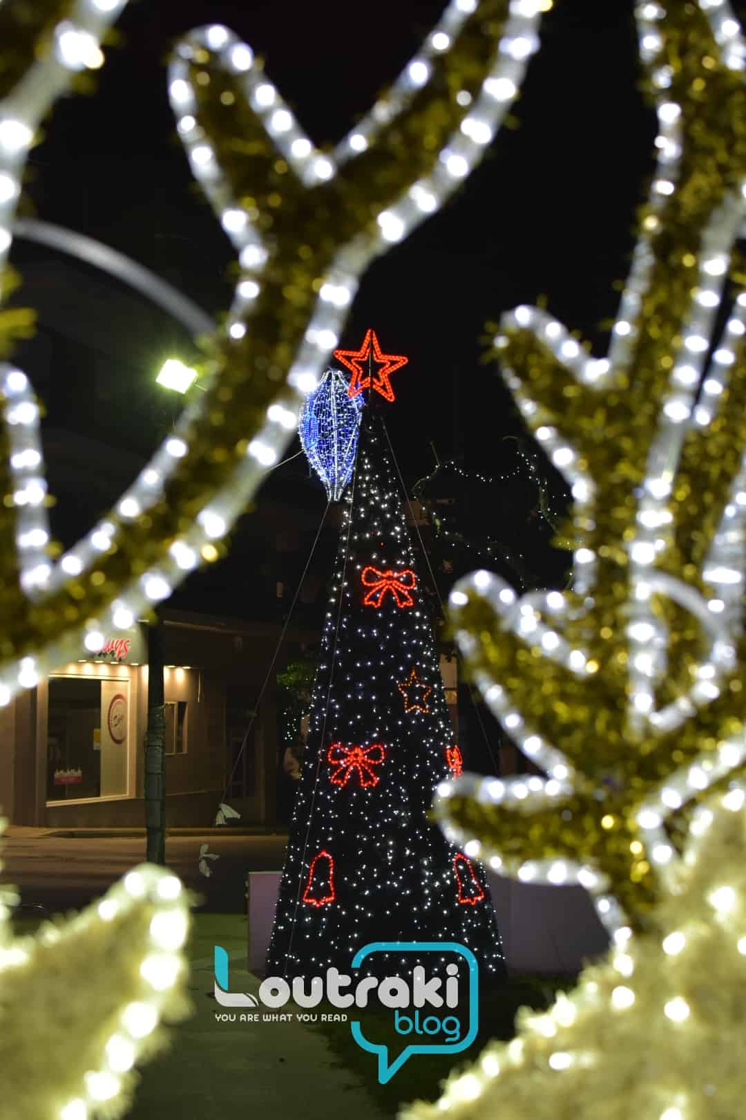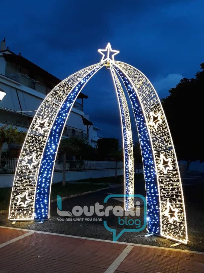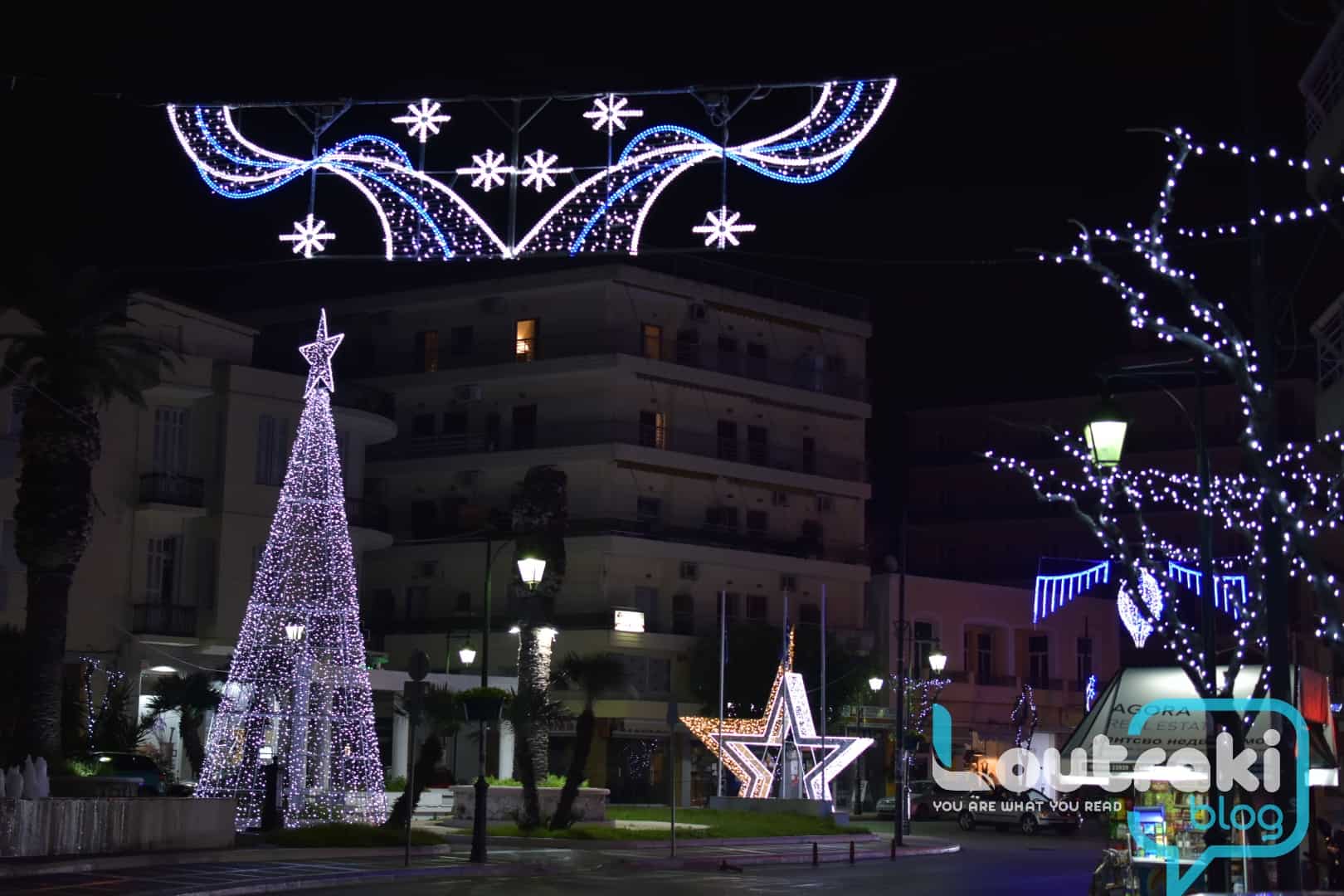 Ο Χριστουγεννιάτικος στολισμός είναι και φέτος πολύ όμορφος στο Λουτράκι! Φωτάκια και στολίδια σε όλους τους κεντρικούς δρόμους ομορφαίνουν την πόλη!