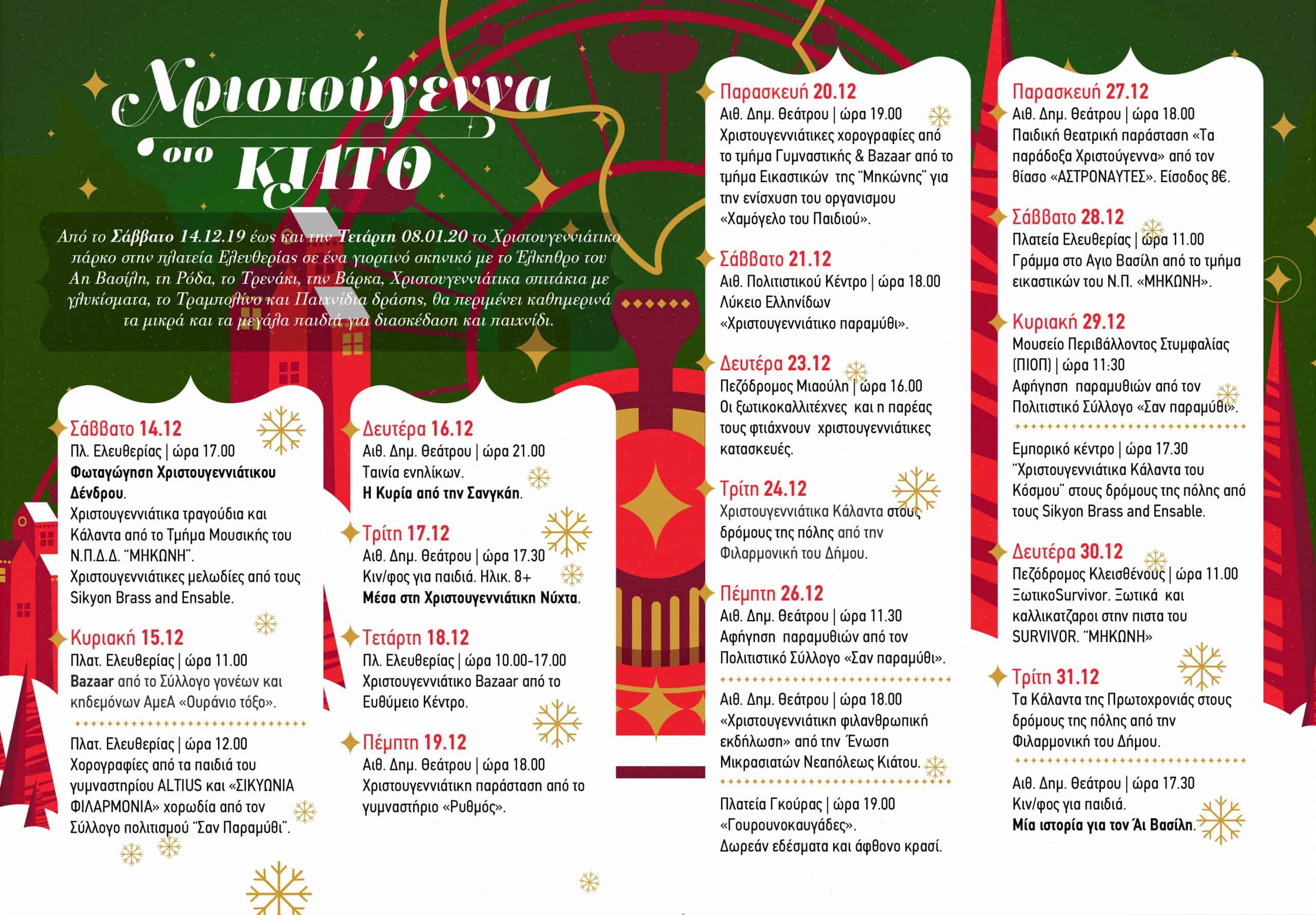 Τα ξωτικά και οι βοηθοί του Αη Βασίλη θα μεταμορφώσουν το Κιάτο σε ένα παραμυθένιο σκηνικό με δράσεις και εκδηλώσεις για μικρούς και μεγάλους!