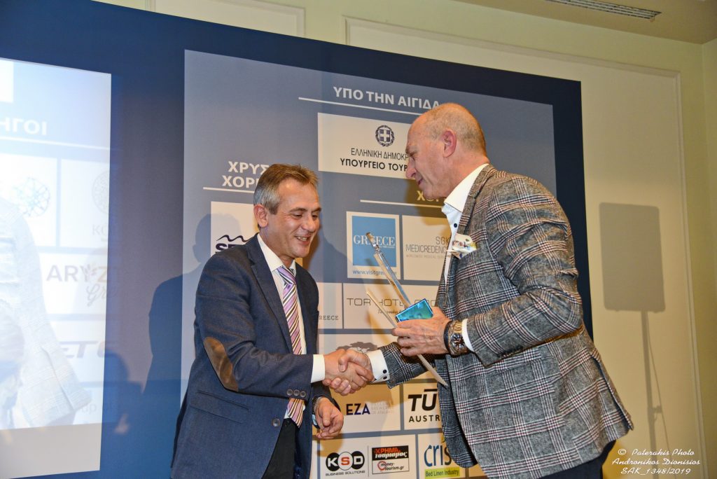 Κατά τη διάρκεια της εκδήλωσης, απένειμε βραβεία επιχειρηματικής αριστείας για το Amada Colossos Resort στον Διευθύνων Σύμβουλο της Colossos SA κ. Άρη Σουλούνια, για τον ξενοδοχειακό Όμιλο Louis Hotels στον Louis Hotels Corfu Area Manager κ. Ποσειδώνα Θεοδώρου, για την εταιρεία ARYZDA Greece sτον Διευθύνοντα Σύμβουλο κ. Σεραφείμ Κόλλια και για την PURATOS Hellas στον Γενικό Διευθυντή της επιχείρησης κ. Αντώνιο Σαλεβουράκη.