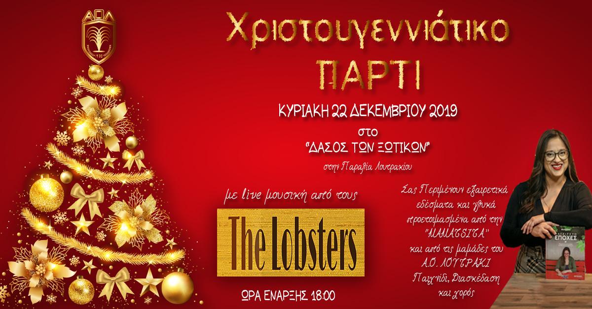 Ο Α.Ο. ΛΟΥΤΡΑΚΙ σας προσκαλεί στο ΧΡΙΣΤΟΥΓΕΝΝΙΑΤΙΚΟ ΠΑΡΤΙ διοργανώνει την Κυριακή 22 Δεκεμβρίου στο “ΧΩΡΙΟ ΤΩΝ ΞΩΤΙΚΩΝ” στο Παραλιακό Πάρκο Λουτρακίου.
