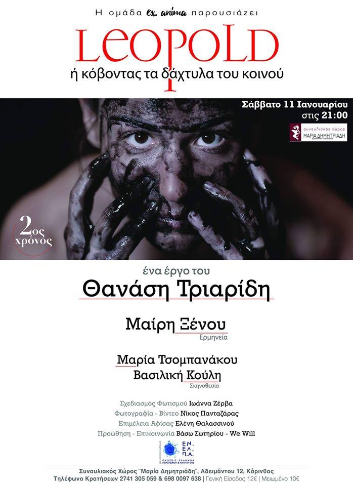 To «Leopold ή κόβοντας τα δάχτυλα του κοινού» του Θανάση Τριαρίδη, γράφτηκε το 2016 και βασίζεται στην ιστορία του Λεοπόλδου του Β’, Βασιλιά του Βελγίου και εκούσια «ιδιοκτήτη» του Κονγκό για περισσότερο από δύο δεκαετίες.