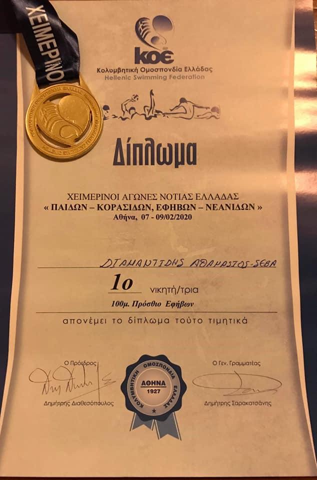 Ο Διαμαντίδης κατέκτησε 3 μετάλλια! Ένα Χρυσό στα 100 μέτρα πρόσθιο με χρόνο 01:05.33 και δύο ασημένια στα 50 και 200 Πρόσθιο με χρόνο 00:30.30 και 02:26.22 αντίστοιχα .Τα τρία μετάλλια του,έρχονται να προστεθούν στα 3 που είχε κατακτήσει ο αδερφός του Χάρης την προηγούμενη εβδομάδα φτάνοντας συνολικά τα 6 για το ΝΟΚ για τις πρώτες δύο φάσεις του χειμερινού πρωταθλήματος.