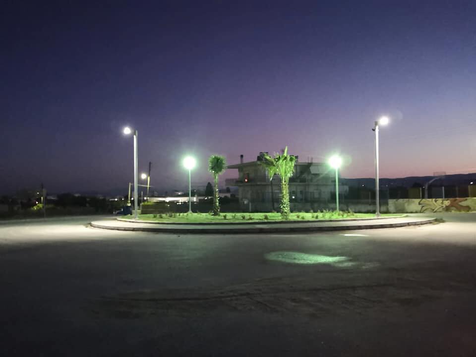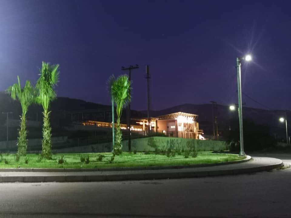 Η μικρή πλατεία που βρίσκεται δίπλα στον Προαστιακό σταθμό Αγίων Θεοδώρων άλλαξε όψη, με την τοποθέτηση τεσσάρων μεγάλων φωτιστικών σωμάτων και την δενδροφύτευση τριών φοινίκων που προσδίδουν μια διαφορετική όψη στην πλατεία!