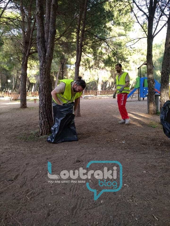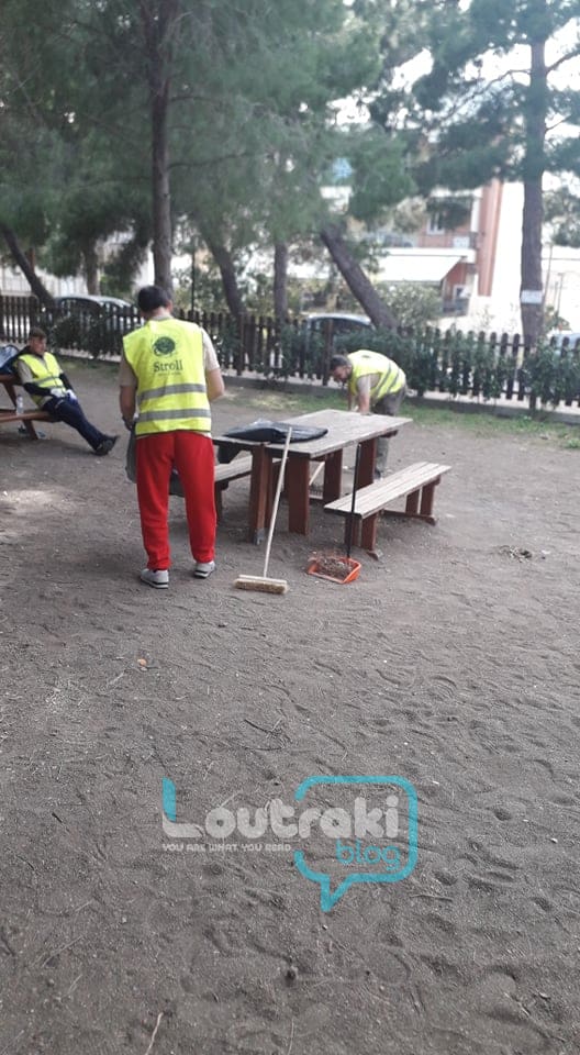 Για μια ακόμη φορά πήραν σκούπες και φαράσια, χλοοκοπτικά και καθάρισαν το Πάρκο Δεξαμενής στο Λουτράκι !