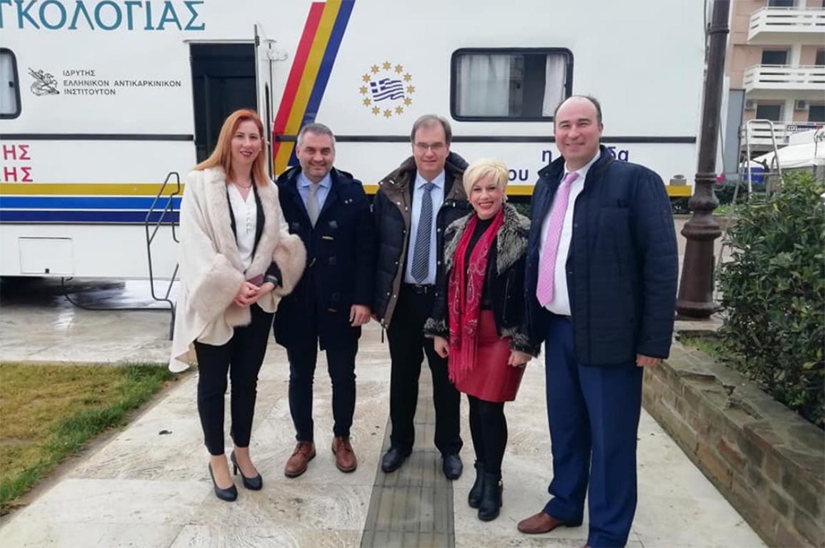 Ο Αντιπεριφερειάρχης ΠΕ Κορινθίας κ. Αναστάσιος Γκιολής , ο Δήμαρχος Ξυλοκάστρου- Ευρωστίνης κ. Βλάσιος Τσιώτος και Μέλος του Ιδρύματος Ογκολογίας και Περιφερειακός Σύμβουλος Ιατρός κ. Άγγελος Χρονάς παρευρέθηκαν στην ειδική και πλήρως εξοπλισμένη αυτοκίνητη μονάδα του Ελληνικού Ιδρύματος Ογκολογίας, τη Δευτέρα 9 Μαρτίου 2020, στο Ξυλόκαστρο.