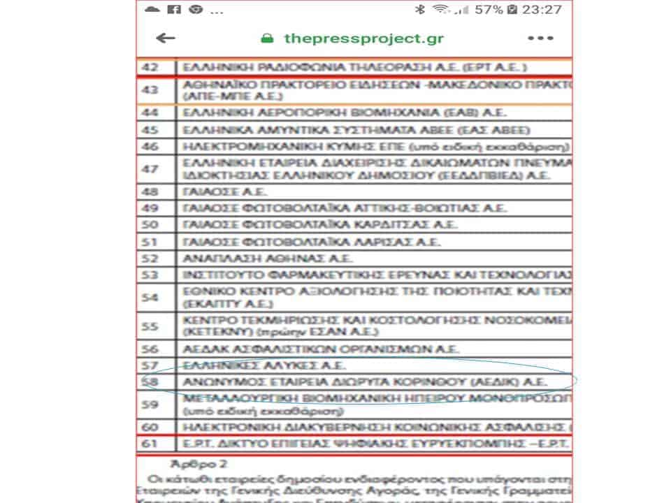 Σημειώνεται επίσης πως η μεταφορά των παραπάνω δεν είναι η μόνη, καθώς σύμφωνα με την ίδια απόφαση, την ίδια διαδρομή ακολουθεί πλήθος επιχειρήσεων και φορέων του δημόσιου και του ευρύτερου δημόσιου τομέα, όπως η Ελληνική Διαχειριστική Εταιρεία Υδρογονανθράκων Α.Ε., ο Οργανισμός Αστικών Συγκοινωνιών Αθηνών και Θεσσαλονίκης, οι Ελληνικές Αλυκές Α.Ε., η ΕΑΒ (Ελληνική Αμυντική Βιομηχανία), τα Ελληνικά Αμυντικά Συστήματα, η Ηλεκτρομαγνητική Κύμης (τελεί υπό ειδική εκκαθάριση), και εταιρείες διαχείρισης περιουσίας Πανεπιστημιακών Ιδρυμάτων, που χαρακτηρίζονται ως εταιρείες «δημοσίου ενδιαφέροντος κατά την έννοια της περίπτωσης ιβ του άρθρου 2 του ν. 4548/2018».